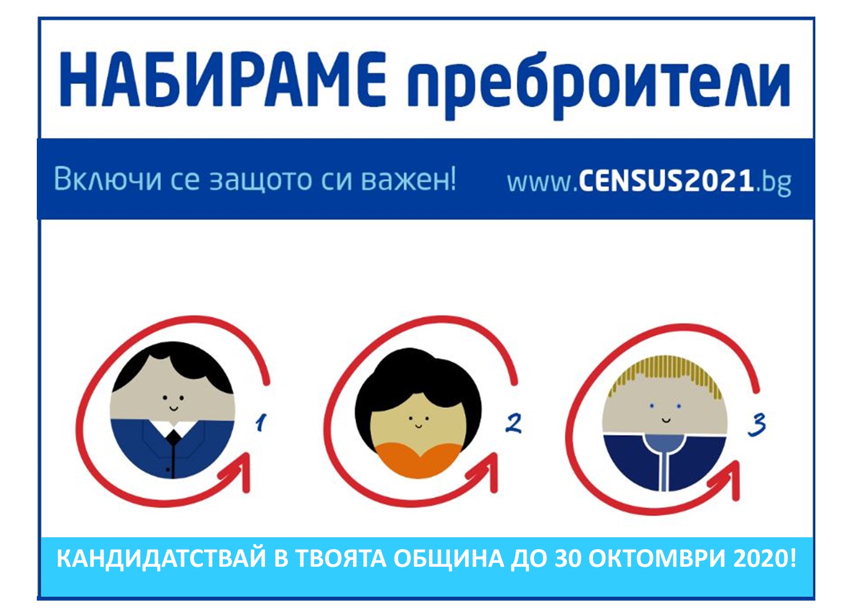 От 15 септември започва набиране на преброители и контрольори за предстоящото през януари и февруари 2021 г. Преброяване на населението и жилищния фонд.