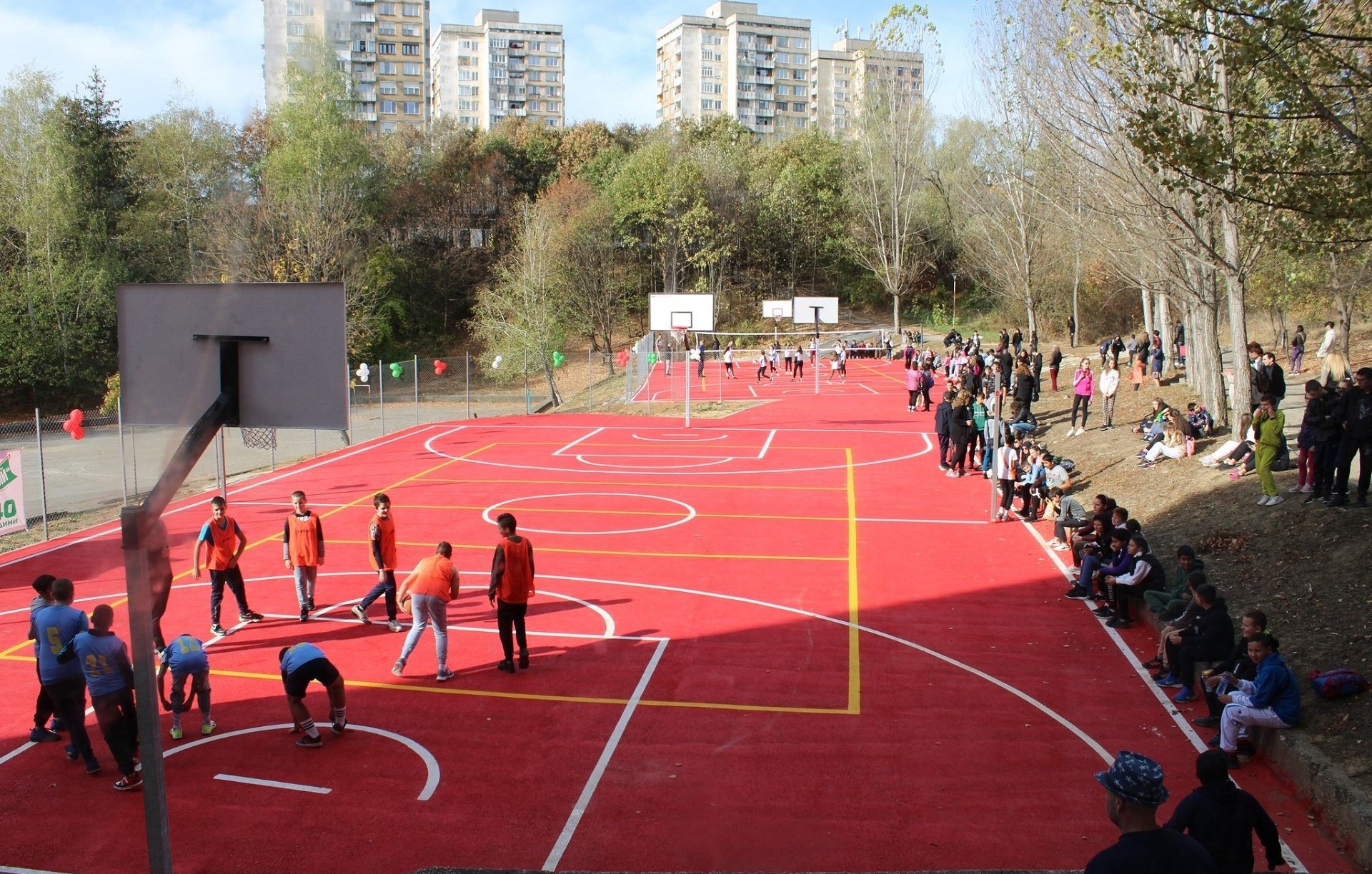 Ремонт на спортна площадка с площ от 921 м2 и обособяване на две игрища с размери 16х30 м и 16х26 м с площ 5х5м между тях за практикуване на баскетбол и волейбол. Предвидено е асфалтиране, монтаж на предпазна мрежа от южната страна с височина 2 м.