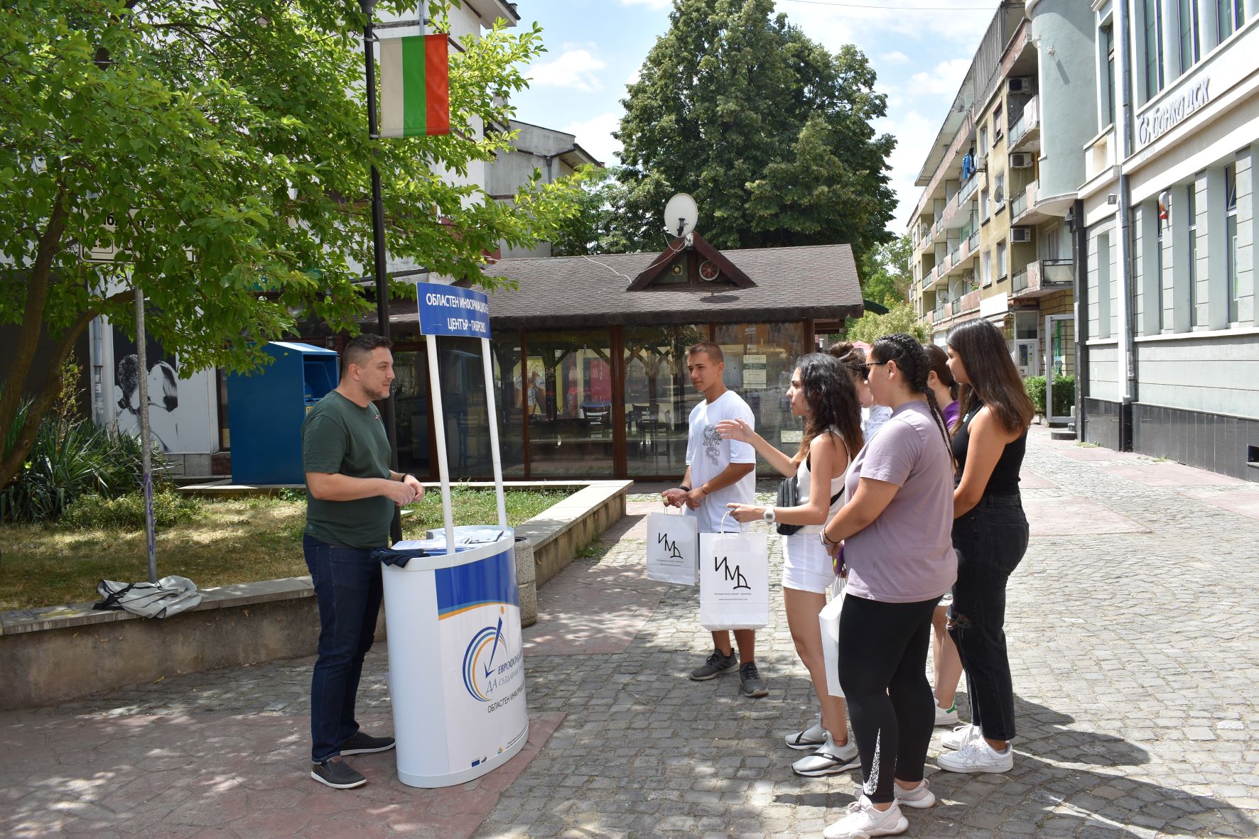 В периода 2-4 август 2022 г. Областен информационен център – Габрово проведе информационни срещи в общините Севлиево, Дряново и Трявна. Организацията на събитията чрез приемна на открито даде възможност на близо сто посетители да се запознаят с актуалните и предстоящи възможности за финансиране с европейски средства.