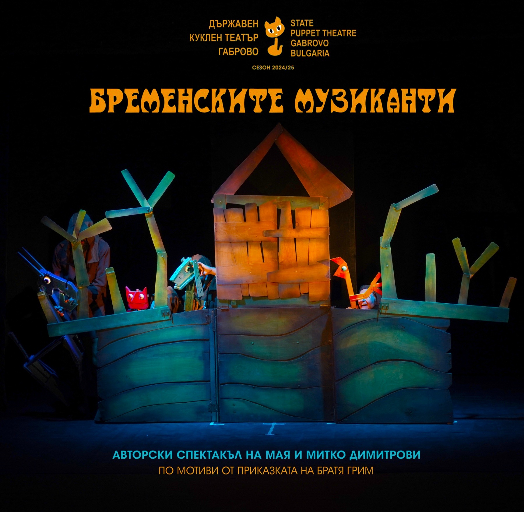 На 23 януари в 18.00 часа може да гледате премиерата на най-новото заглавие в афиша на Държавен куклен театър Габрово "БРЕМЕНСКИТЕ МУЗИКАНТИ" е авторски спектакъл на Мая и Митко Димитрови по мотиви на приказката на Братя Грим.