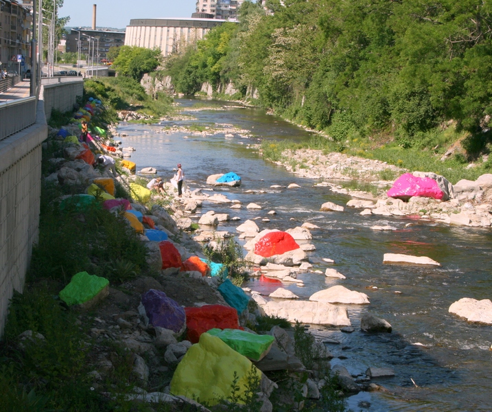 Каменните късове по брега и във водата привличат погледа на минувачите, провокирайки ги да се чудят защо и как те са сменили монотонния си сив цвят с живите, ярки цветове, излезли сякаш от тазгодишния карнавален афиш. Любопитни габровци вече заснеха как стилистите на реката я променят.