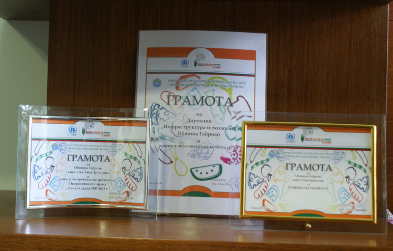 С три награди за Община Габрово се върна Искра Маджарска, старши експерт в дирекция „Инфраструктура и екология”, от проведената във Велико Търново работна среща по повод Световния ден на околната среда - 5 юни. Отличията са за „Община на годината”, за работа по проекти със средства от Оперативна програма „Околна среда 2007 – 2013 г.” и за принос в опазването на околната среда на дирекция „Инфраструктура и екология”.