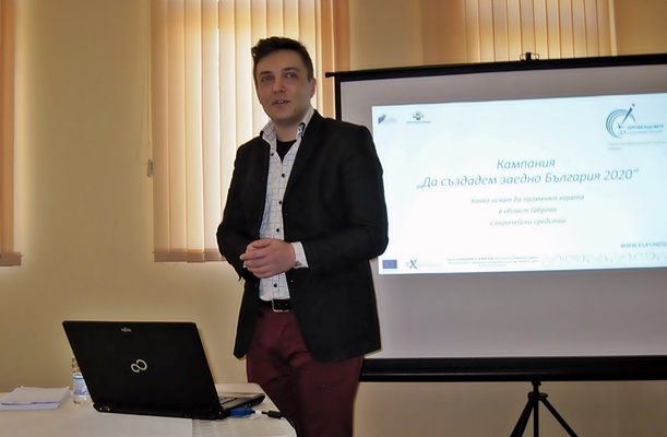 Eтап втори на кампанията „Да създадем ЗАЕДНО България 2020“ бе изпълнен през изминалата седмица с поредица от информационни срещи в областта, на които експертите на ОИЦ – Габрово запознаха потенциалните бенефициенти – бизнеса, неправителствения сектор, както и местната власт с реалната възможност за претворяване на една споделена на улицата идея в проект и възможностите за неговото финансиране.