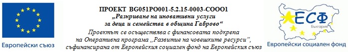 Проект – BG051PO001-5.2.15-0003-COOO1 „Разкриване на иновативни услуги за деца и семейства в община Габрово“