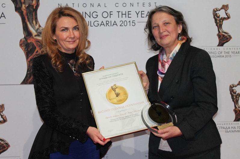 Целодневна детска градина „Слънце“ в Габрово е отличена като „Високо оценена номинация“ в категория „Сгради – образователна инфраструктура“ на националния конкурс „Сграда на годината 2015“.