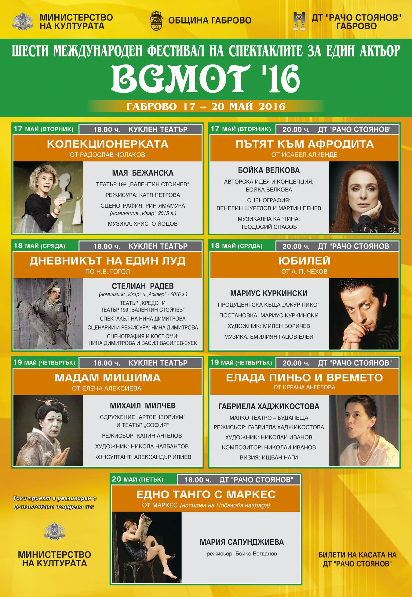 ПРОГРАМА BGМОТ - МЕЖДУНАРОДЕН ФЕСТИВАЛ НА СПЕКТАКЛИТЕ ЗА ЕДИН АКТЬОР