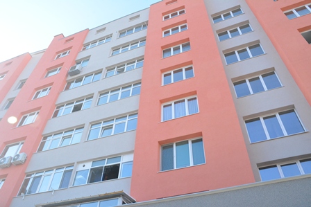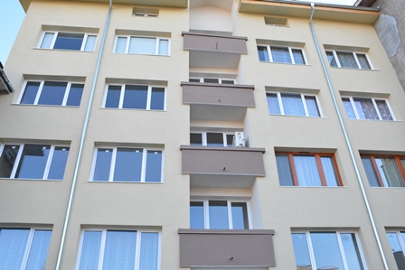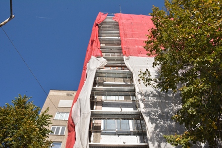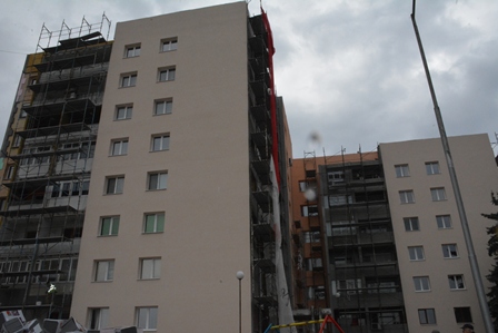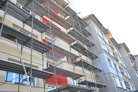 8.гр.Габрово – ж.к. Петър Падалски 6 - в процес на изпълнение, договорът е до 04.04.2017 г., но ще приключи в рамките на месец декември 2016 г. Сградата преди и по време на обновяването: