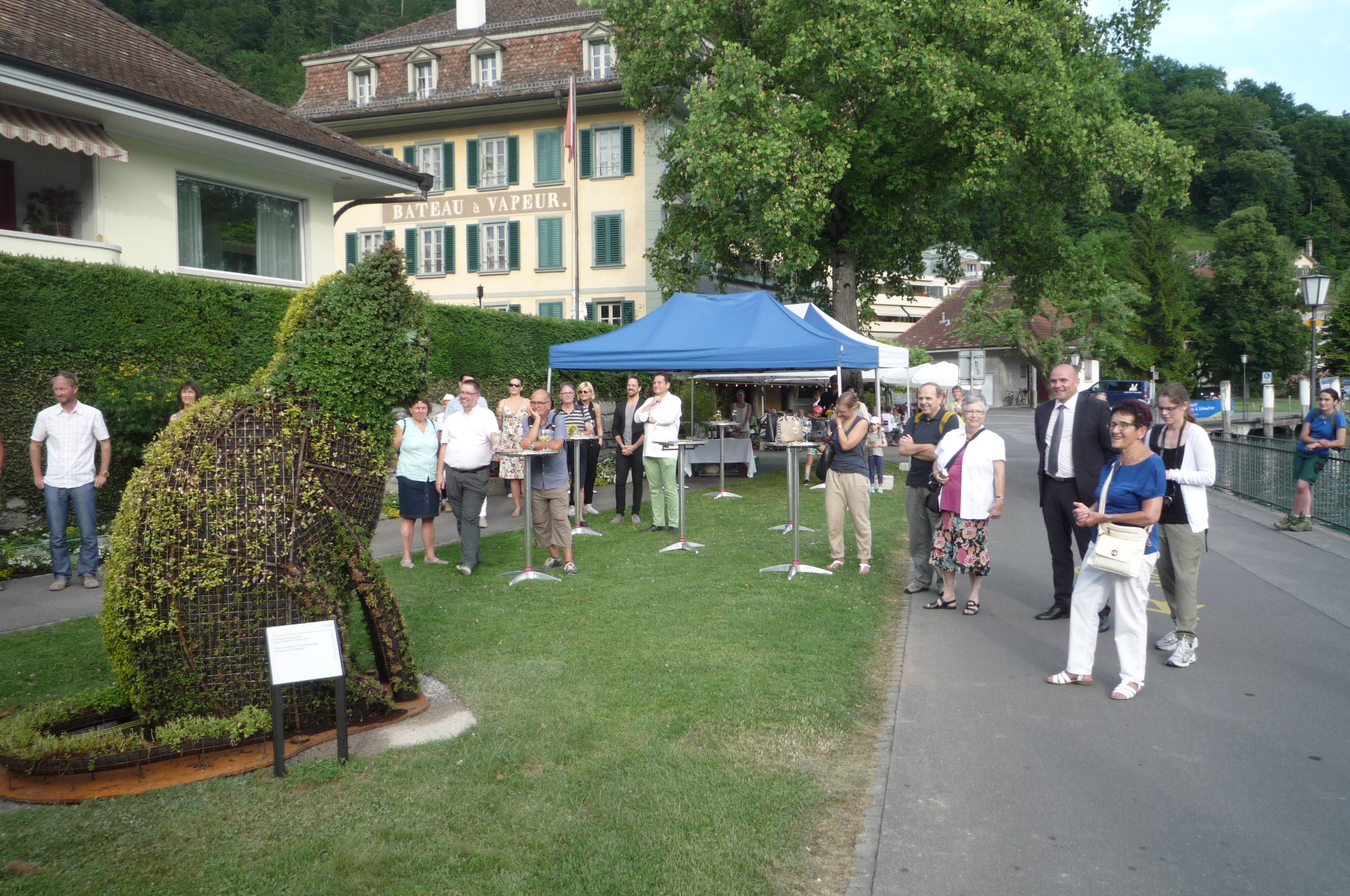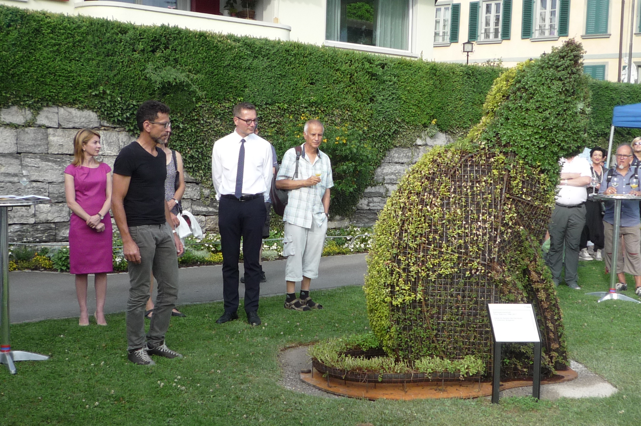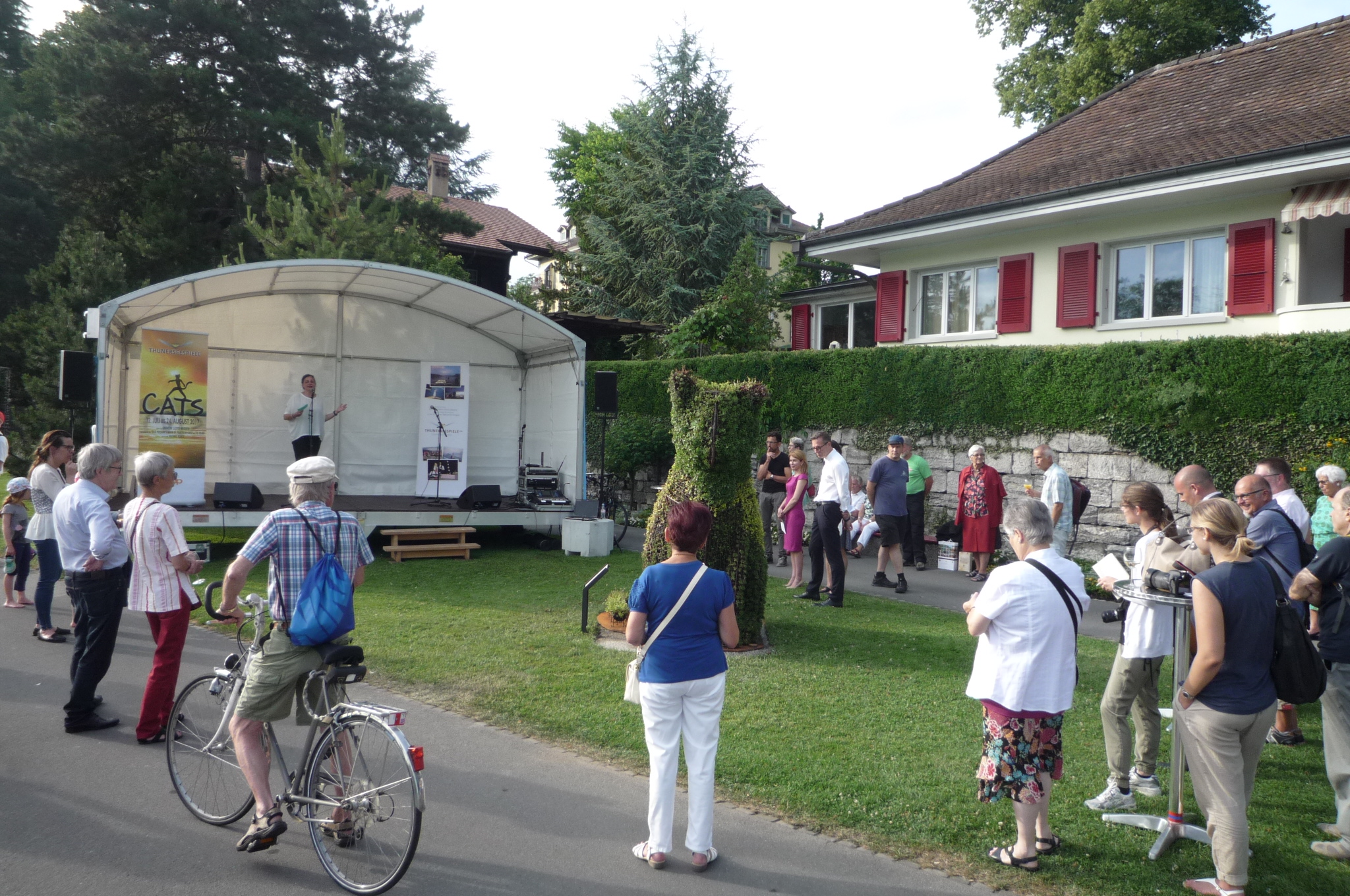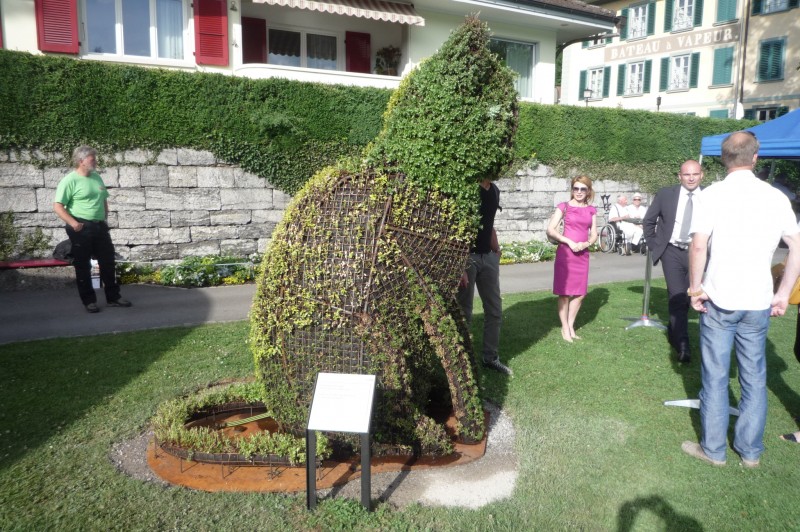 Арт инсталацията е дело на ръководителя на Предприятието по озеленяване в Тун и неговите колеги, а поводът е 20 годишнината от партньорството между Габрово и Тун. На церемонията по откриването, съвсем тематично, се изявиха солистите на мюзикъла Cats, който това лято, в продължение на около месец, ще се играе на специално изградена сцена на брега на тунското езеро.