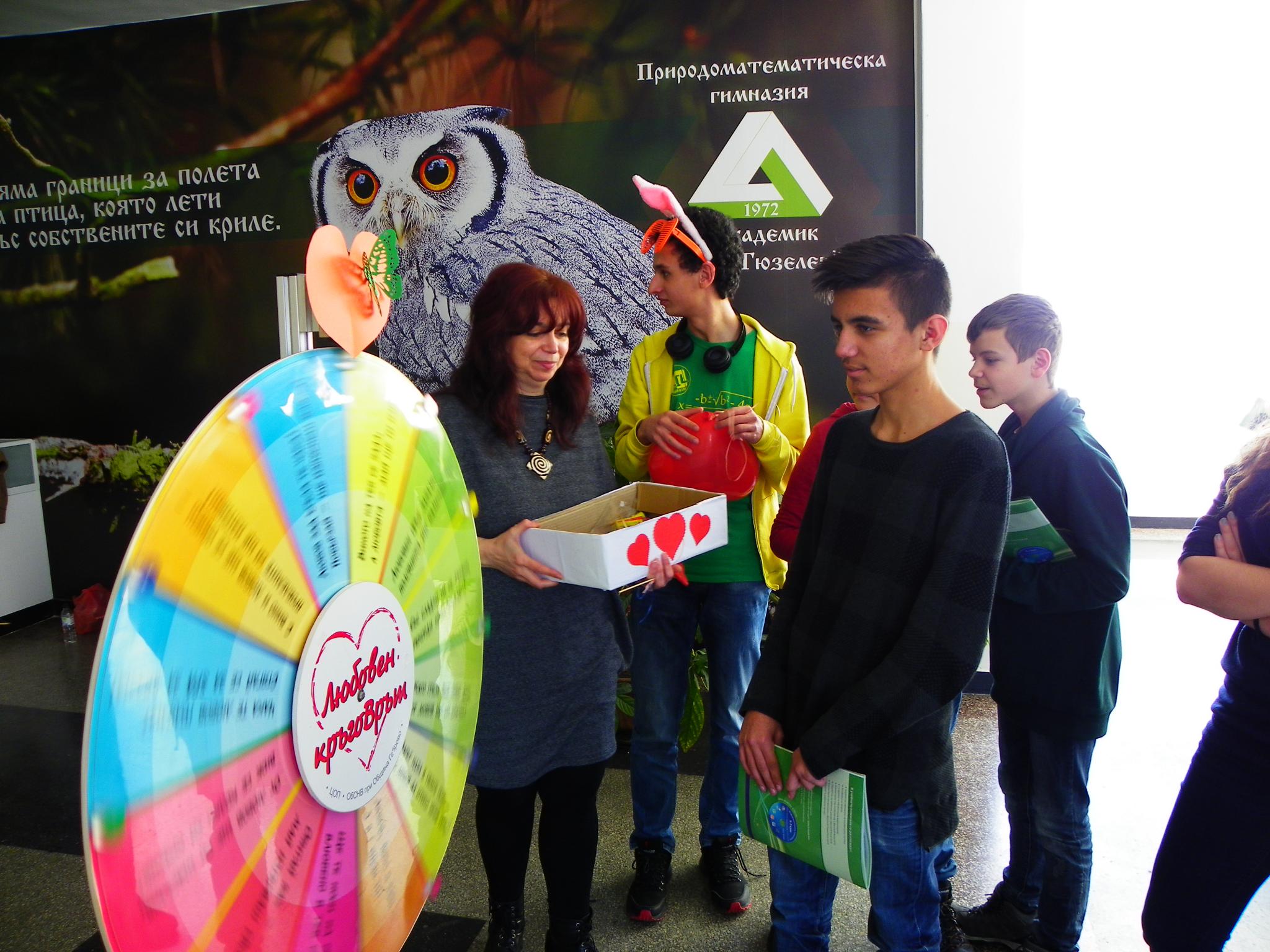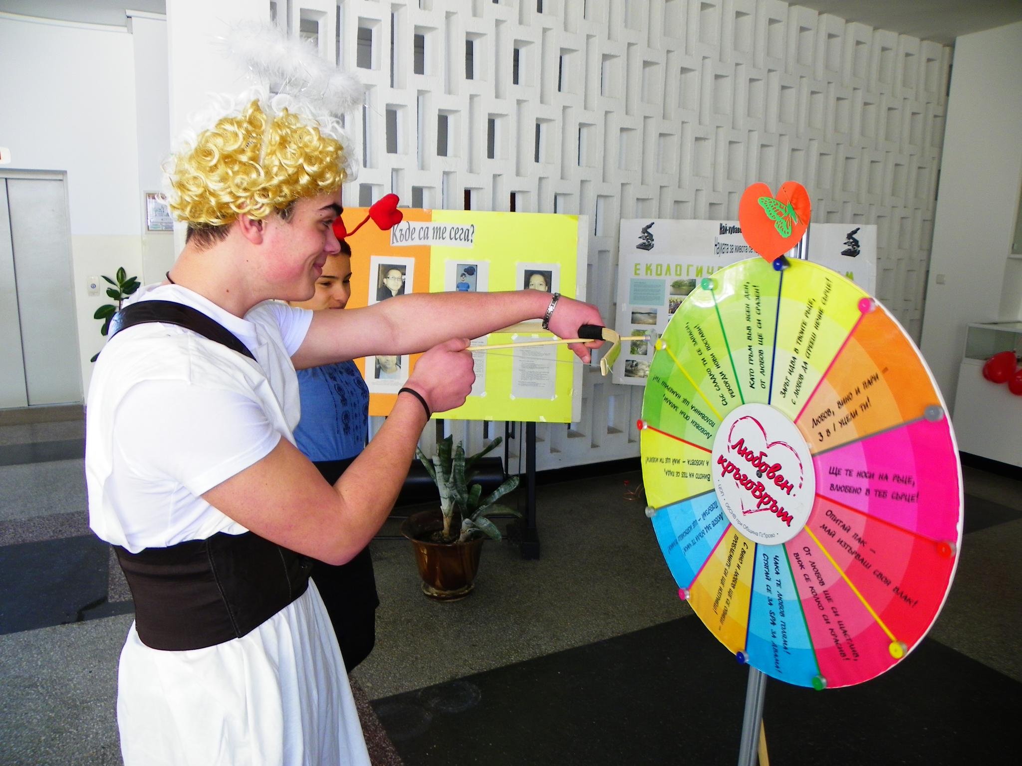 Кампания по повод Свети Валентин се проведе в ПМГ "Акад. Иван Гюзелев", Габрово. Доброволците от Младежкия съвет по наркотични вещества зарадваха своите съученици с много изненади, подаръци и любовни стрели! Играта "Любовен кръговрът" се превърна в истинска атракция, а Купидон и Феята на любовта орисаха всички младежи с добрина и обич!