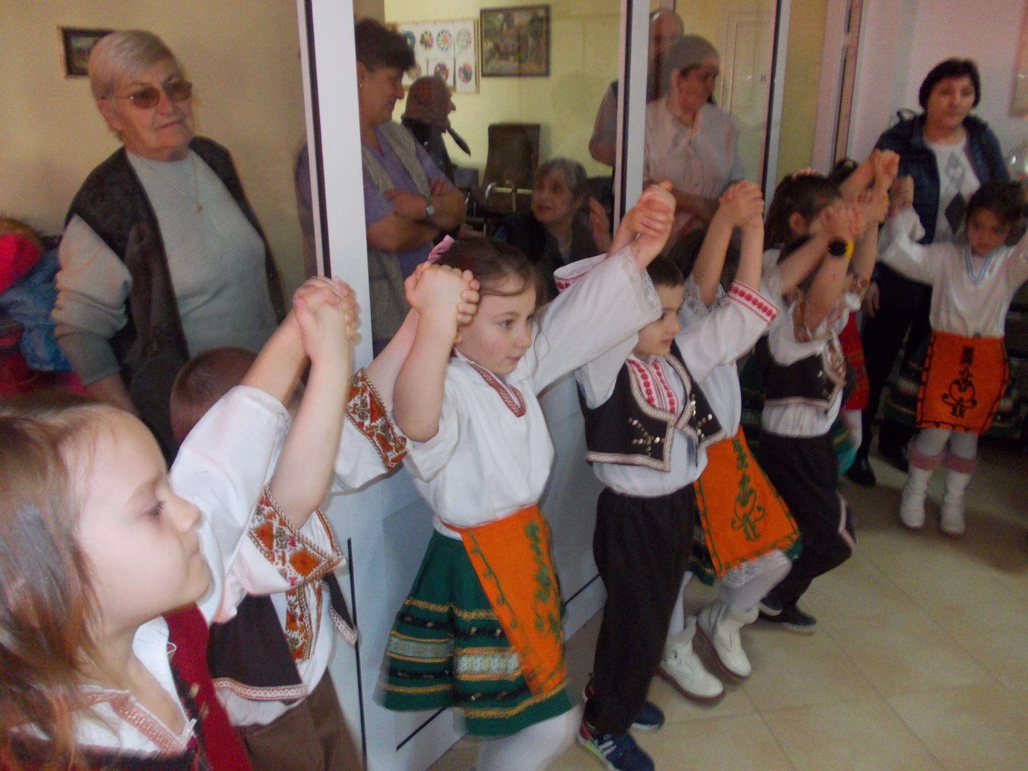 С пъстри танци, песни и благопожелания, децата зарадваха възрастните хора, които с много вълнение съпреживяха традициите за празника и споделиха наричанията за здраве и берекет.