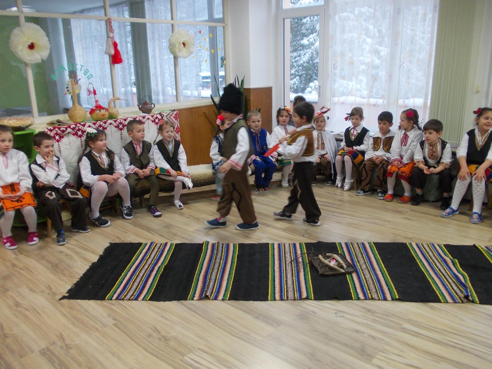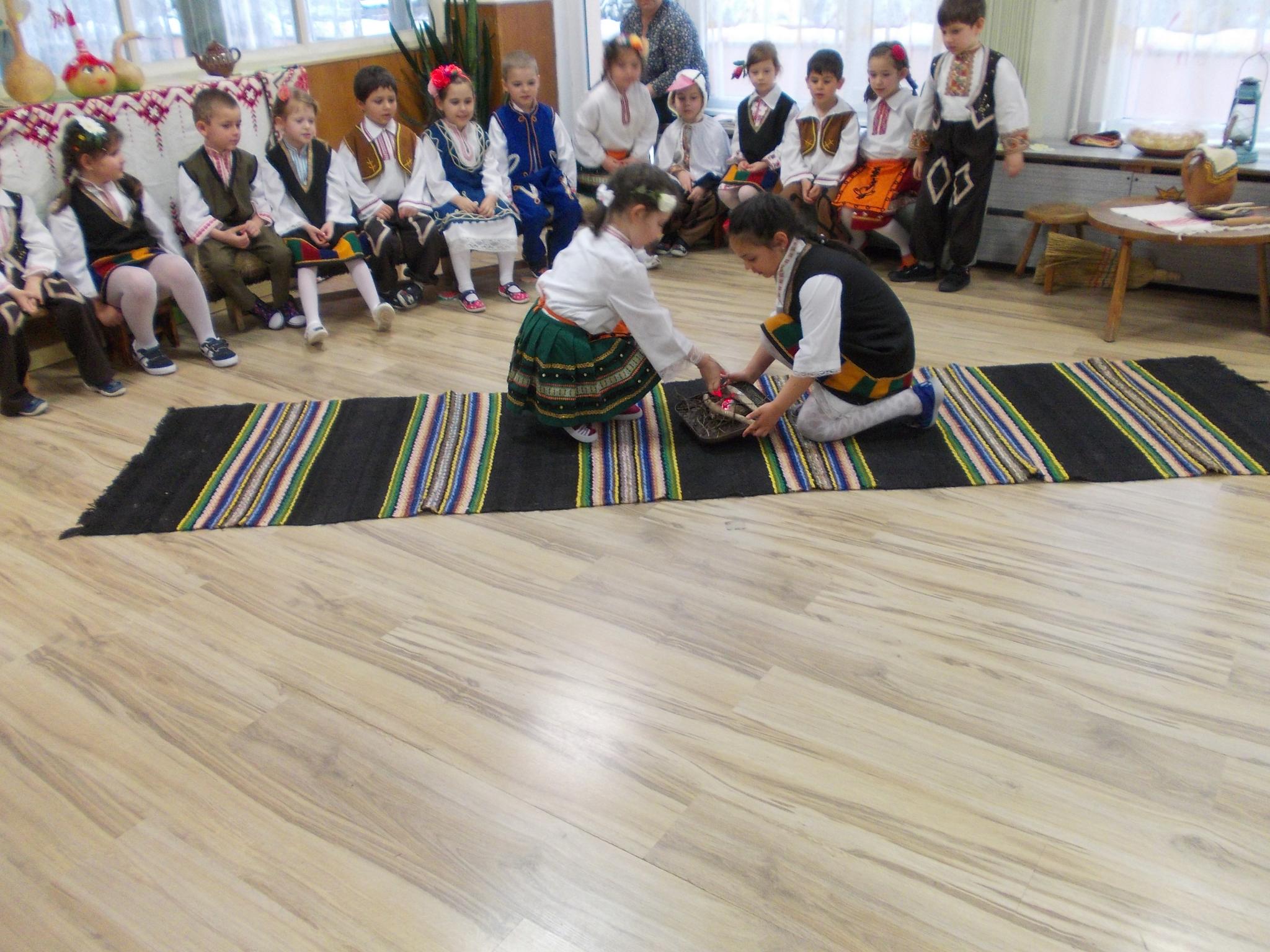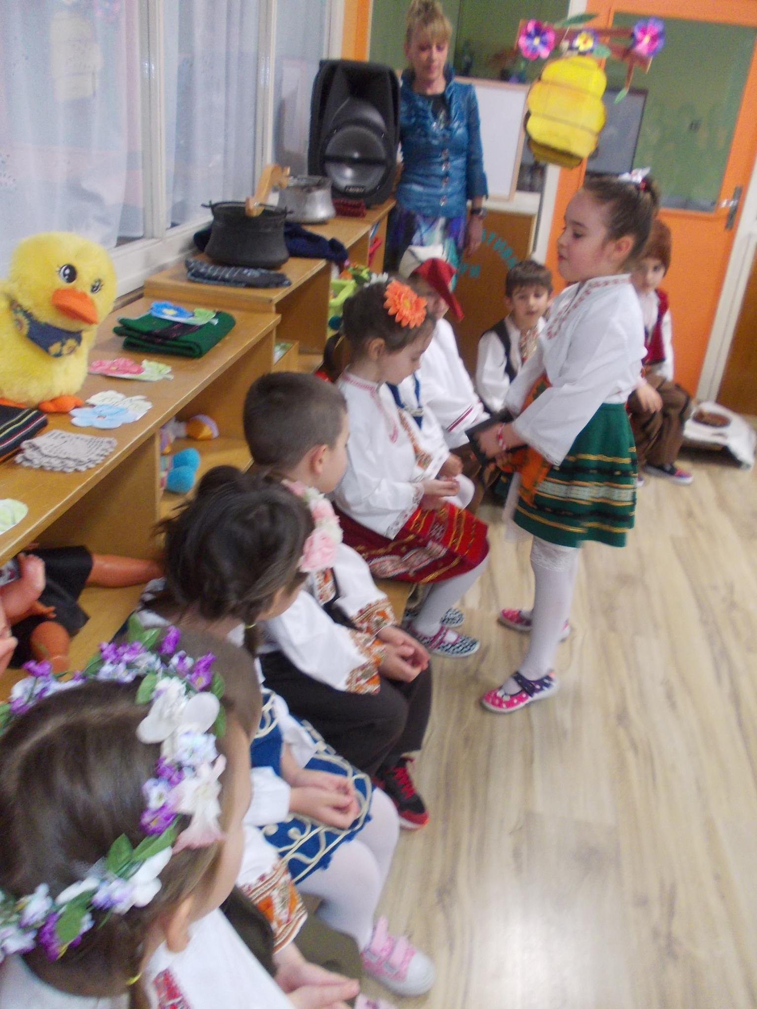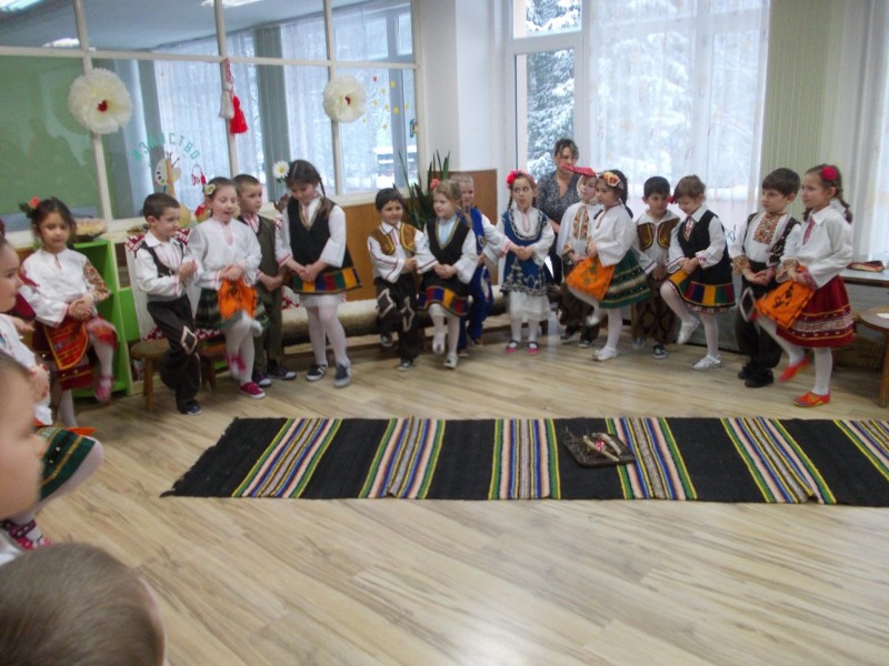 На 22.03.18г. децата от подготвителна група”Маргаритка” 5 годишни от ДГ”Ран Босилек”, пресъздадоха пред своите родители характерните ритуали за отбелязване на „Благовещение”