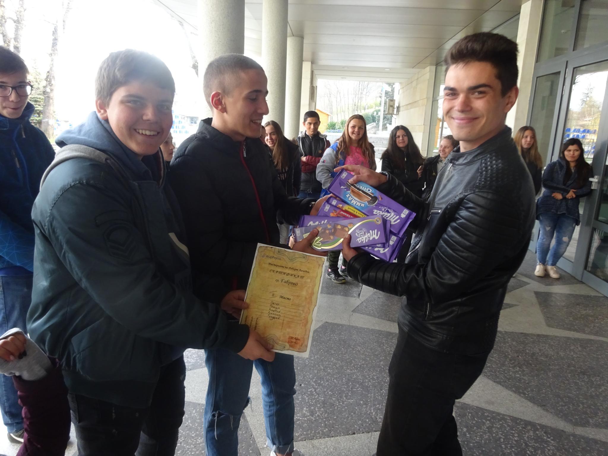За няколко часа участниците влязоха в мистерия, която трябваше да разгадаят, да разшифроват стари кодове още от Втората световна война и да достигнат до верния отговор на загадката. Разделени на отбори, младежите се впуснаха в луда надпревара с много хъс и емоции. Отборът с най- много разгадани загадки получи голямата награда- блутут колонки, а за подгласниците имаше утешителни сладки награди.