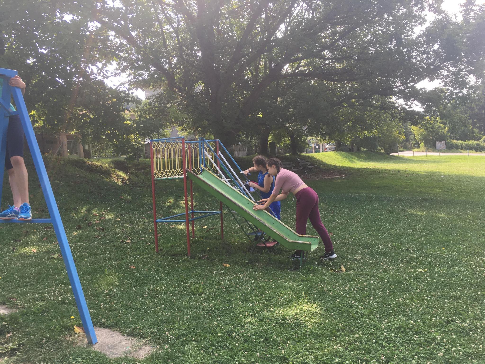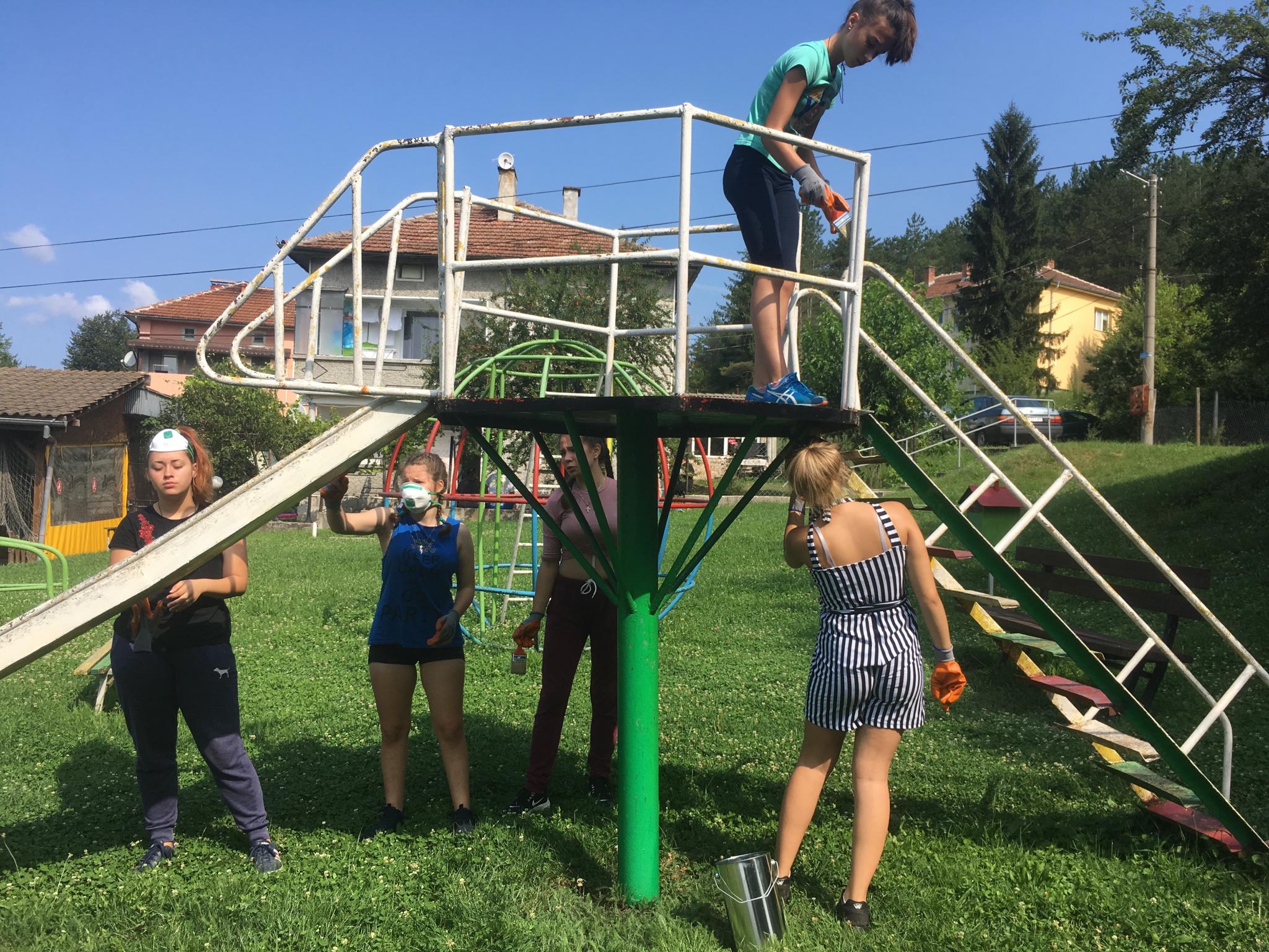 Част от екипа на МСНВ се впусна в доброволческо-приключенска арт операция! Въоръжени с боя, четки и разредител нашите момичета облагородиха успешно детската площадка на село Поповци и я направиха по-красива и приветлива за нейните малки посетители! В края на мисията, те обраха и отпадъците около съоръженията с надежда, че от днес игрите и детският смях ще бъдат повече, а поляната ще бъде пазена чиста!