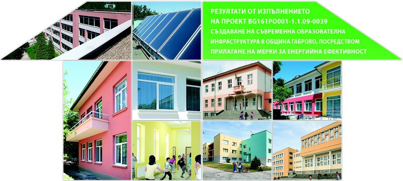 Чрез реализацията на проекта „Създаване на съвременна образователна инфраструктура в община Габрово посредством прилагане на мерки за енергийна ефективност” са обновени енергийно 14 обекта от общинската образователна инфраструктура в Габрово: ОУ „Ран Босилек”, ОУ „Неофит Рилски”, ОУ „Христо Ботев”, ОУ „Иван Вазов”, СОУ „Отец Паисий”, ЦДГ „Явор” – стара и нова сграда, ЦДГ „Първи юни”, ЦДГ „Радост” – база 1,  ЦДГ „Младост”, ЦДГ „Слънце” – база 1, ЦДГ „Перуника” – база 1,  ОДЗ „Дъга” и ОДЗ „Ран Босилек”. Дейностите са финансирани от Европейския фонд за регионално развитие и от държавния бюджет на Република България чрез Оперативна програма „Регионално развитие” 2007-2013 г.