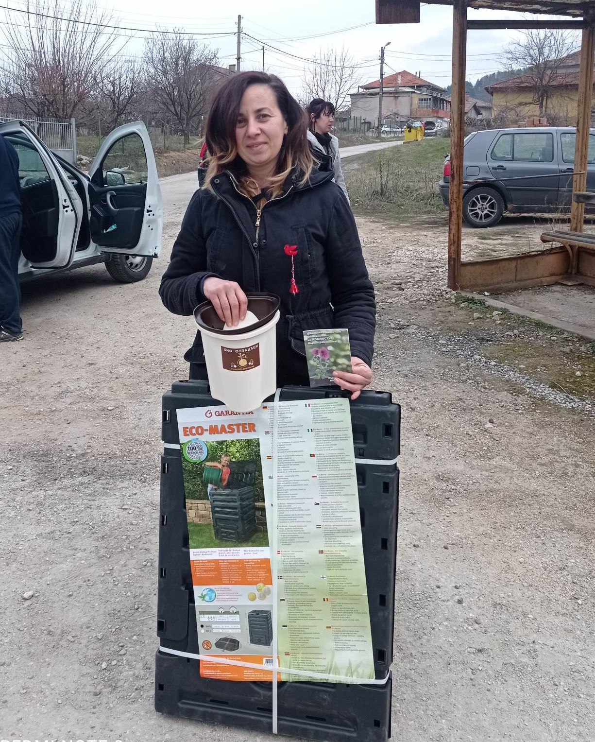 Освен съдове за компостиране деветте домакинства получиха кухненски кошчета за биоотпадъци, както и ръководства с основна информация за процеса по компостиране.