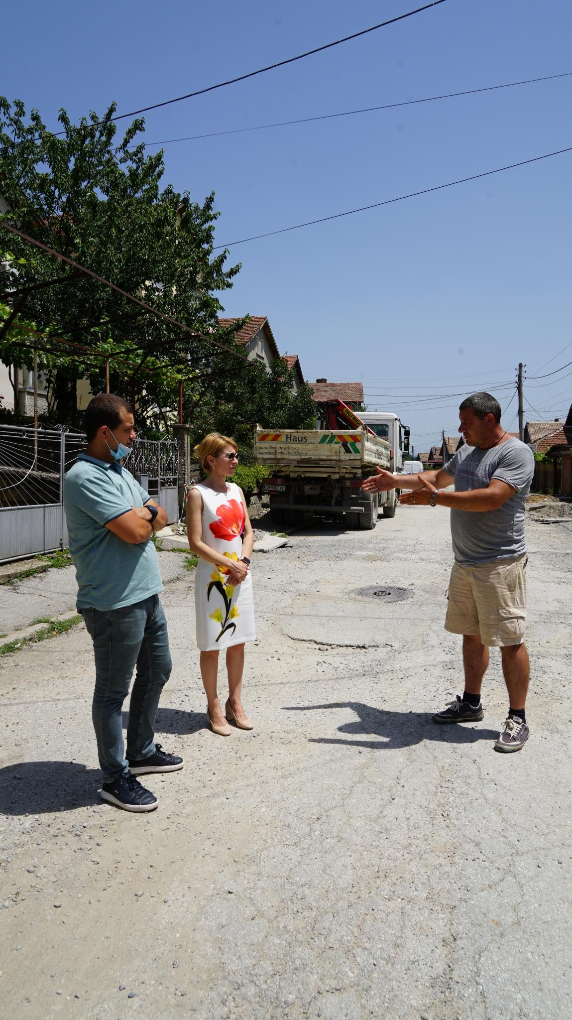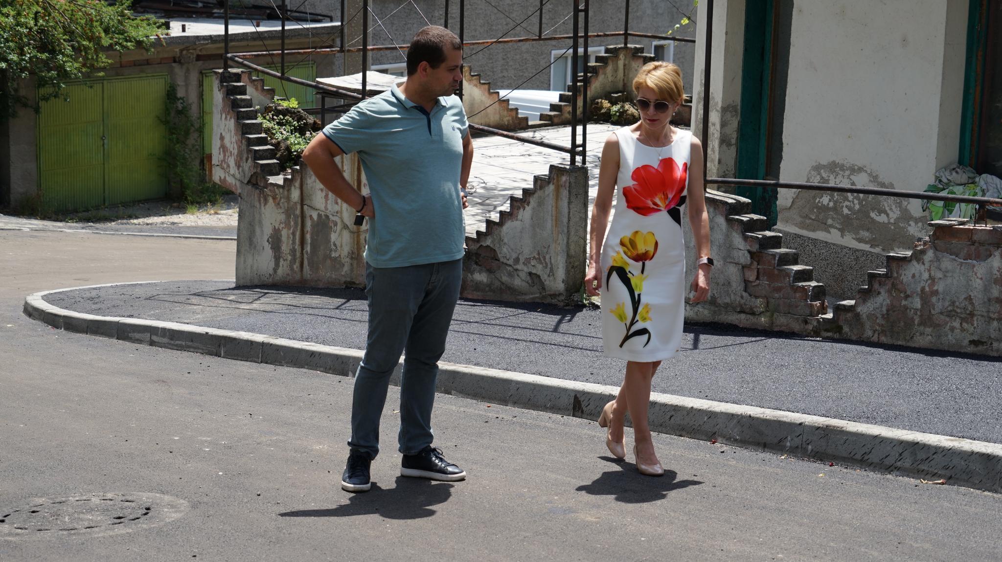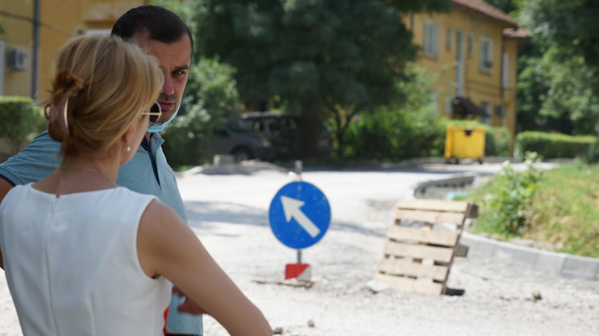 Таня Христова и зам.-кметът по строителство, инфраструктура и екология инж. Деян Дончев провериха на място напредъка на благоустрояването на улици и зони в различни квартали на града.