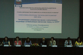 Реновираната, по Оперативна програма "Регионално развитие" зала "Възраждане" отвори врати за работната среща на бенефициентите от всички български общини, които днес и утре конструктивно ще дискутират актуализираните указания на Управляващия орган, във връзка с изпълнението на договори за безвъзмездна финансова помощ по ОП "Регионално развитие".
