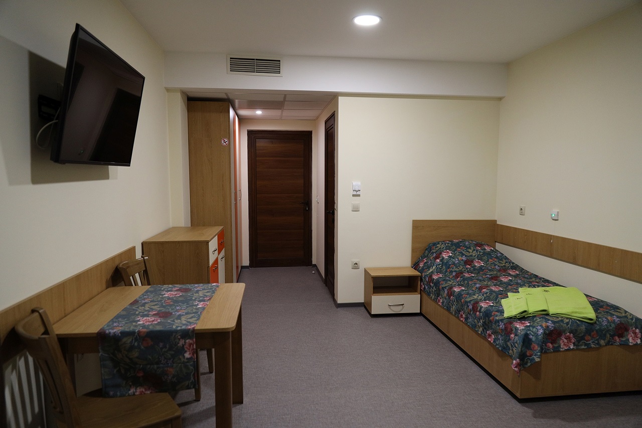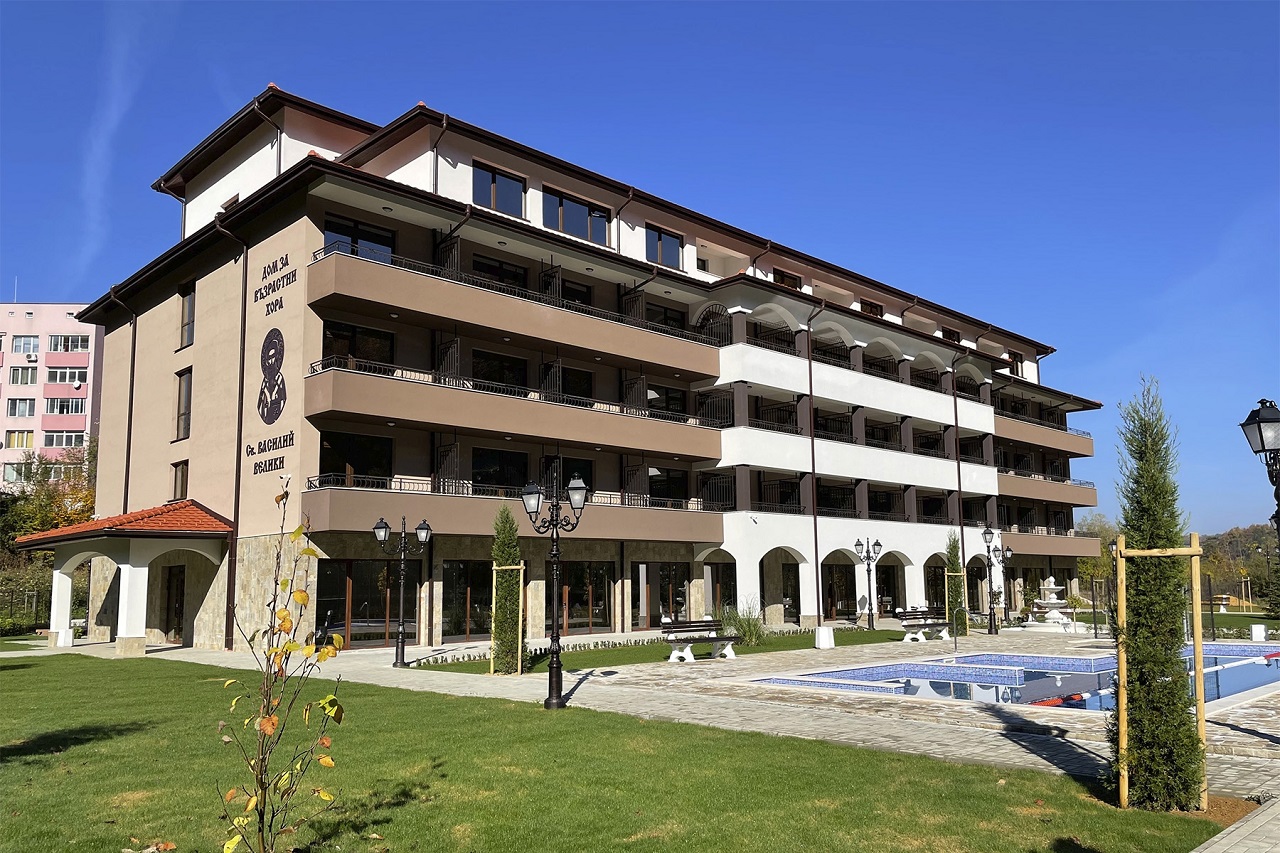 В обекта са предвидени зала за хранене, киносалон, стаи с бани и покрити тераси, лекарски кабинет, манипулационна стая, обслужващи помещения. На последния етаж са разположени девет апартамента за настаняване на посетители и близки на хората, настанени в дома. Целият имот заема площ от 4 247,5 квадратни метра.
