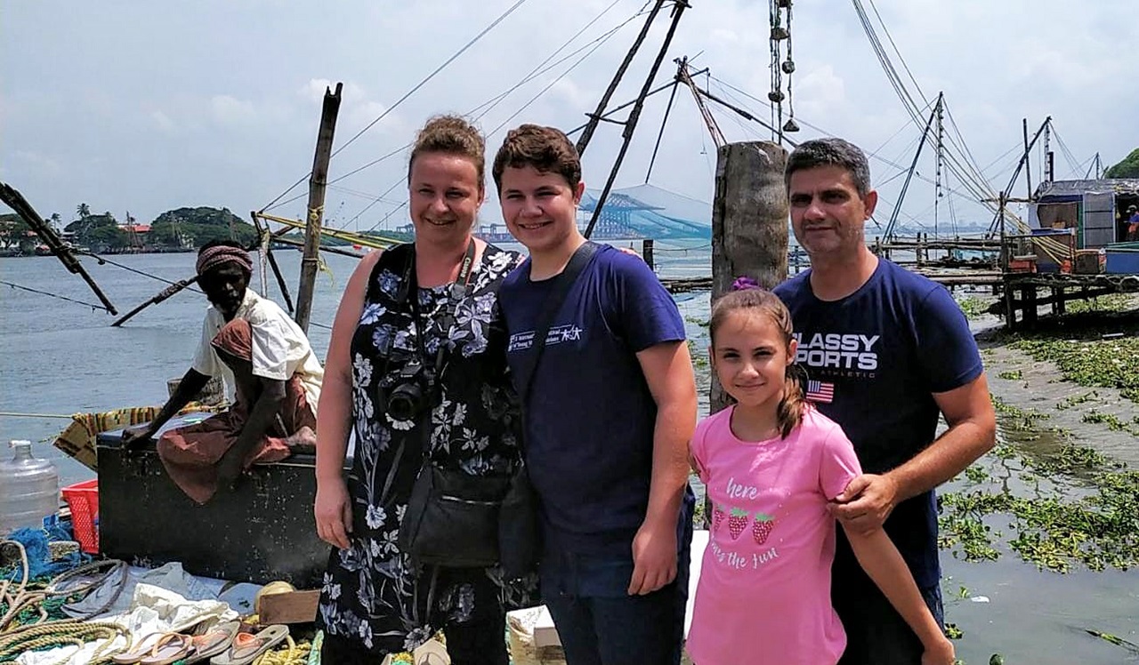 Арх. Пенчева със съпруга си Пламен и децата – Вяра на 12 г., която се занимава с изобразително изкуство, и Ясен на 16 г., който е увлечен по математиката и информатиката. Момент от посещение на семейството в Керала, Индия през 2019 г. © Личен архив