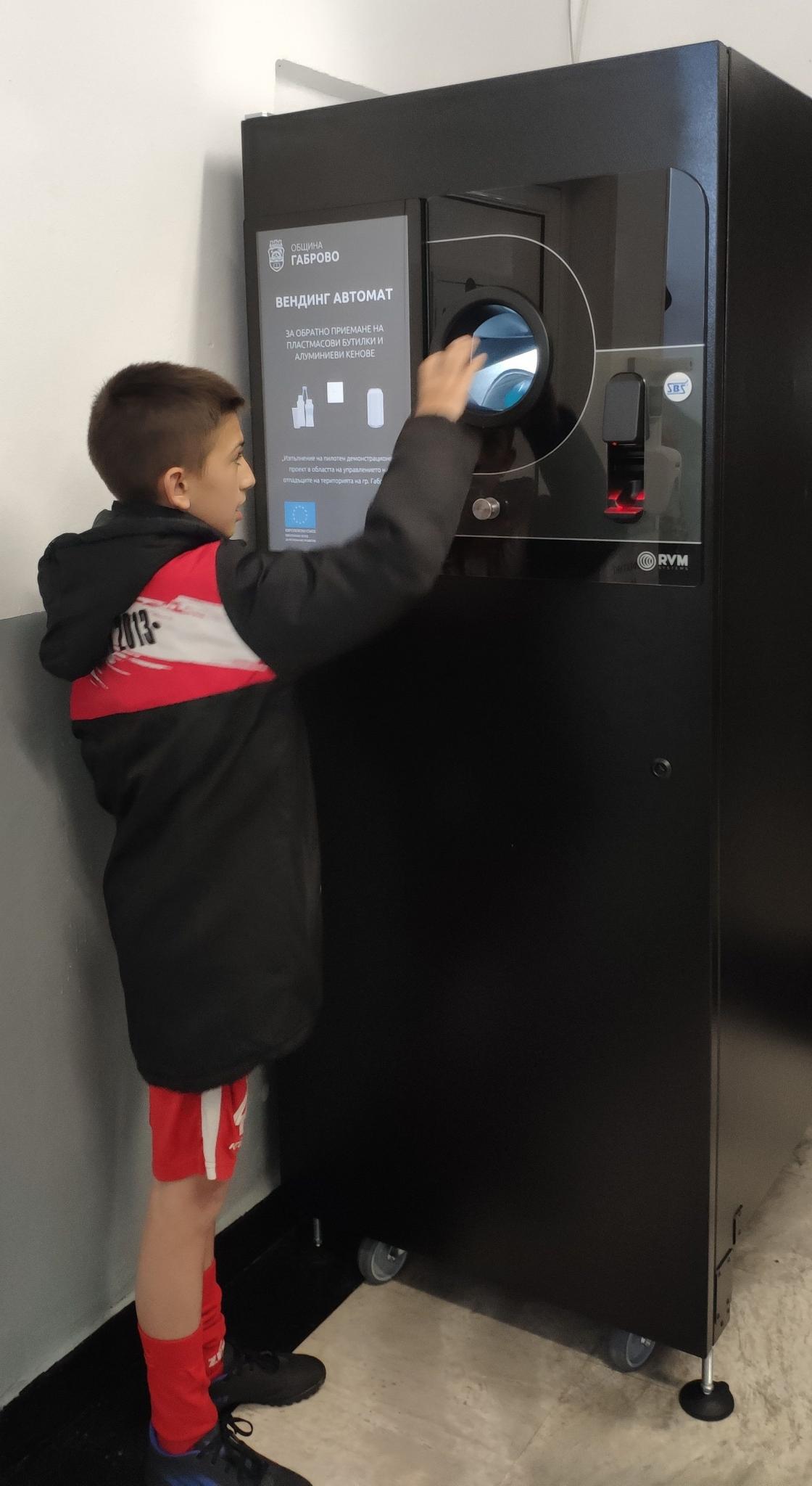 Двете съоръжения бяха разположени точно ден преди големия международен празник Световен ден на Земята, в което екипа на проекта видя добър знак – символ на съхранената природа. А откривайки още символика в доброто начало, оказа се, че първият официален потребител на вендиг автоматите е дете. Това е младата спортна надежда Диян (на снимката), който първи постави отпадък във вендинга, разположен в сградата на стадион „Христо Ботев“.