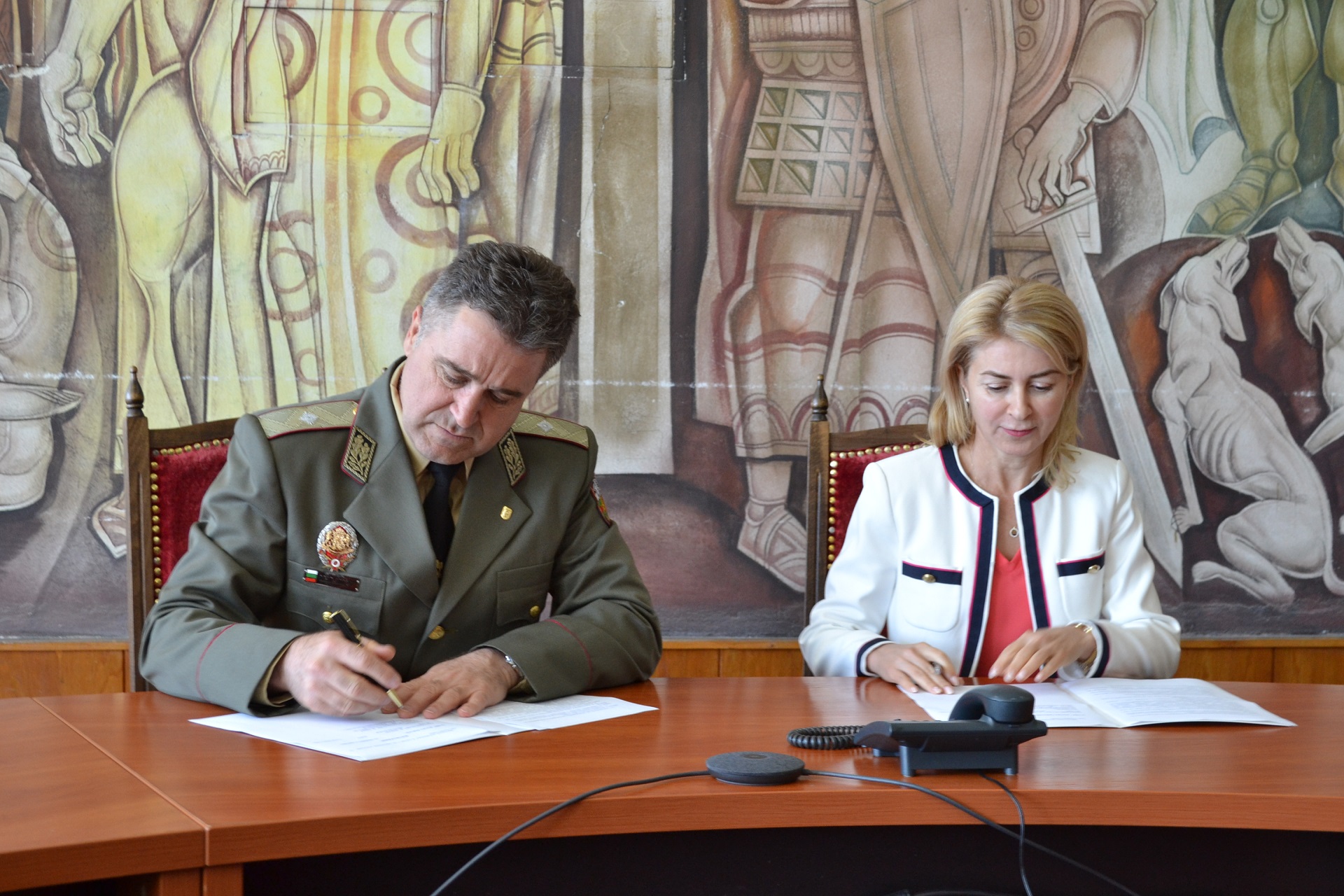 Зам.-кметът по образование, социални дейности, култура и туризъм Невена Минева и полк. Свилен Стефанов © Община Габрово