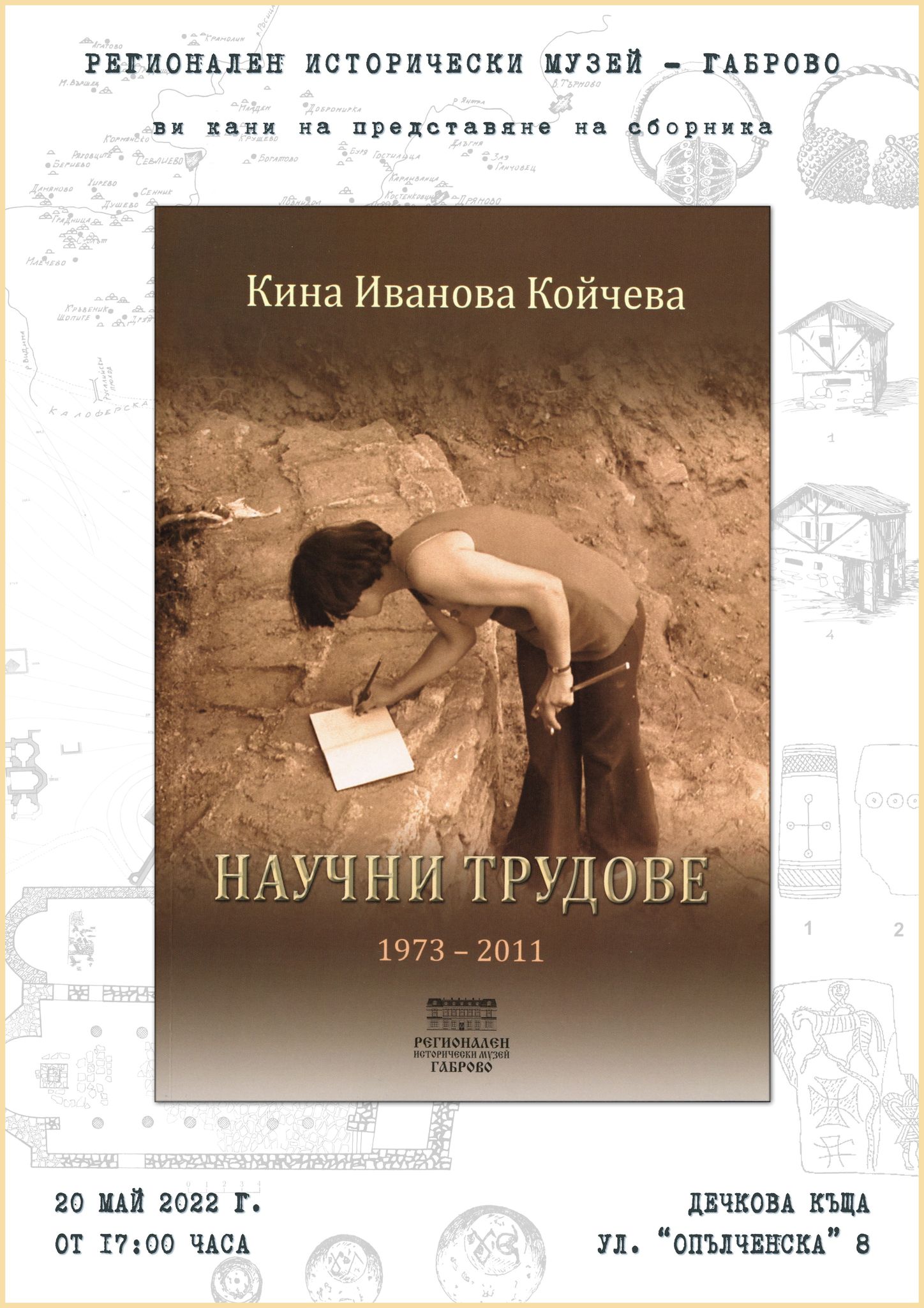 Венецът на празничната програма ще бъде поставен на 20 май от 17.00 ч. в Дечковата къща с представянето на книгата „Кина Иванова Койчева - научни трудове 1973 - 2011“. Изданието на Регионален исторически музей – Габрово включва 42 научни статии на доайена на археологическите проучвания в Габровския исторически музей - Кина Койчева.
