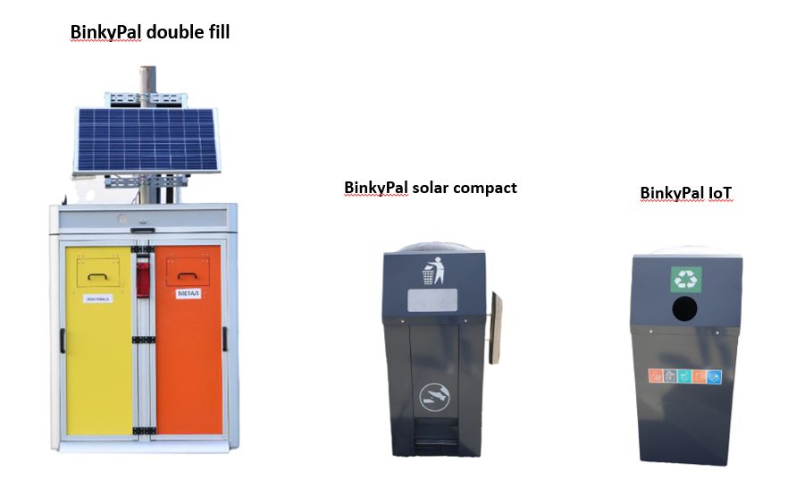 „Умните“ къщички са предназначени за различен вид отпадък – хартия и картон, пластмаса или метал. Най-иновативното от трите решения, моделът BinkyPal double fill, осигурява двукомпонентно разделно събиране на отпадъци – пластмаса и метал. Снабден е с голям соларен панел, ултразвуков сензор за замерване на запълването на обема, тензодатчик за отчитане на тегло и RFID модул за заключване на вратите.