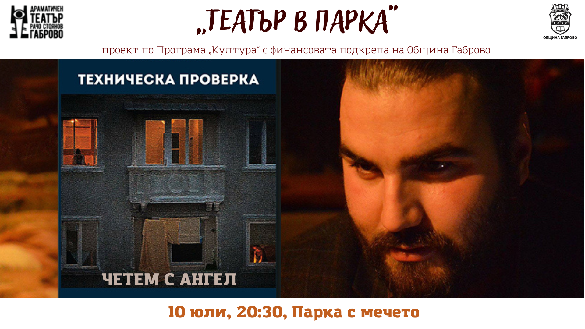 На 10 юли програмата включва две събития. „Четем с Ангел: представяне на пиесата „Техническа проверка“ стартира в 20:30 в Парка с мечето. Няколко актьори от драматичния театър в разговор с автора Ангел Иванов и сценично четене ще представят пиесата, написана по дебютния едноименен роман на габровеца. Ще разберем как странстванията в чужди и непознати земи, но и в собствения свят могат да бъдат претворени на сцена.