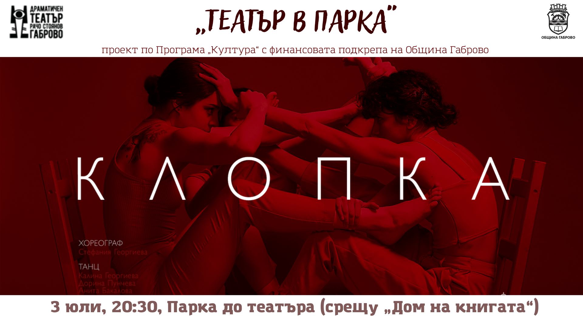 В първата половина на юли парковете около театъра в Габрово ще се превърнат в театрална сцена. Проектът „Театър в парка“ е инициатива на Драматичен театър „Рачо Стоянов“, реализиран по програма „Култура“ с финансовата подкрепа на Община Габрово “.