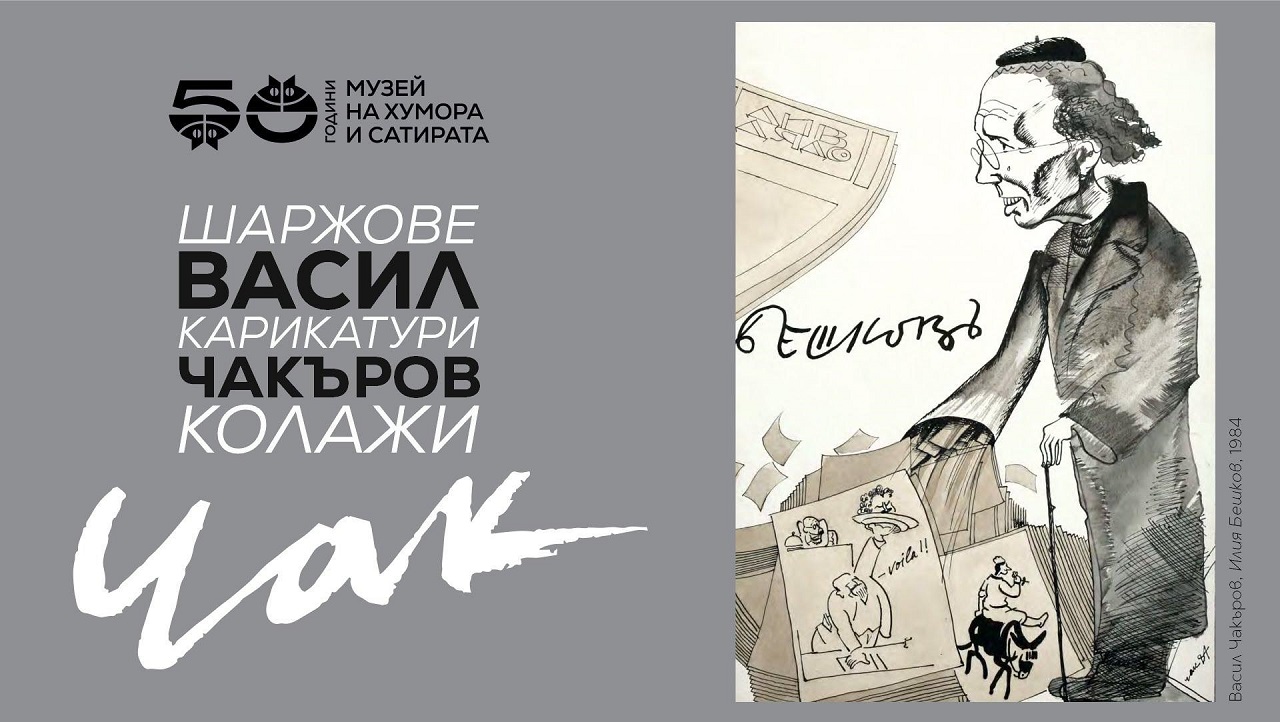 Изложба на Васил Чакъров – Чак „Шаржове, карикатури, колажи“ ще бъде открита утре – 13 октомври, от 18:00 часа в Дома на хумора и сатирата. Куратор на изложбата, която ще продължи до 14 ноември 2022 г., е д-р Ружа Маринска.