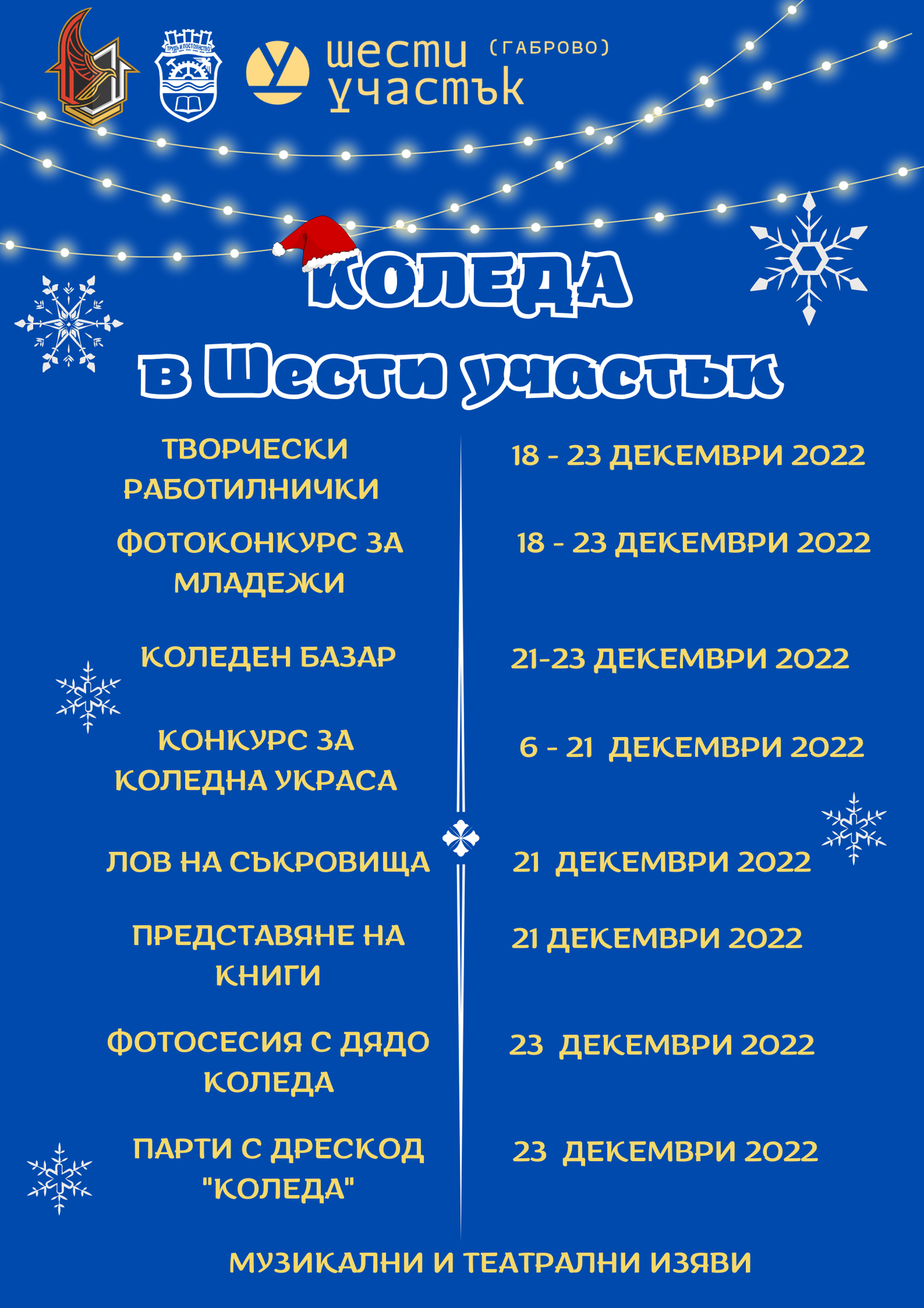 „Коледа в Шести участък“ обещава да ви потопи в магията на най-любимото и най-очакваното време от годината за малки и големи. Наситена със събития програма, в която всеки ще открие нещичко за себе си, а защо не - и за своите любими хора, подготвят Община Габрово, Младежки център и доброволци.