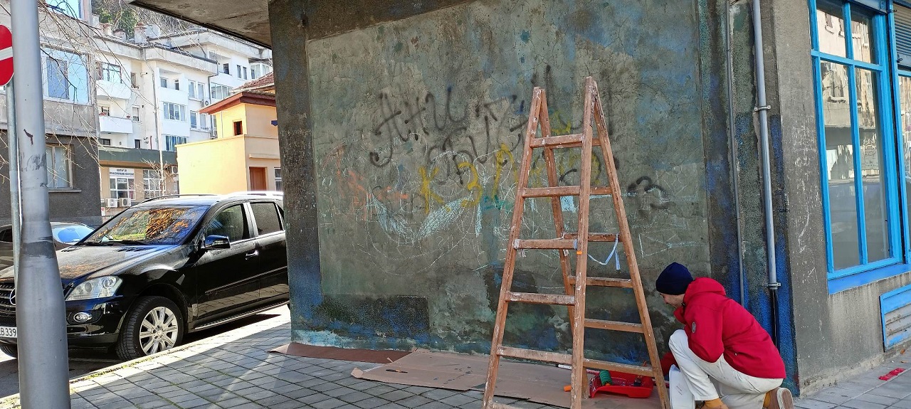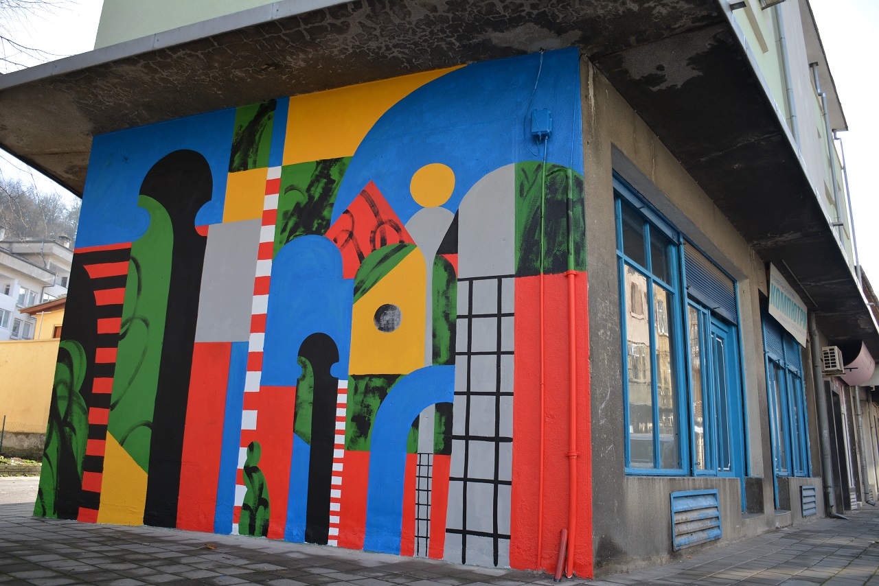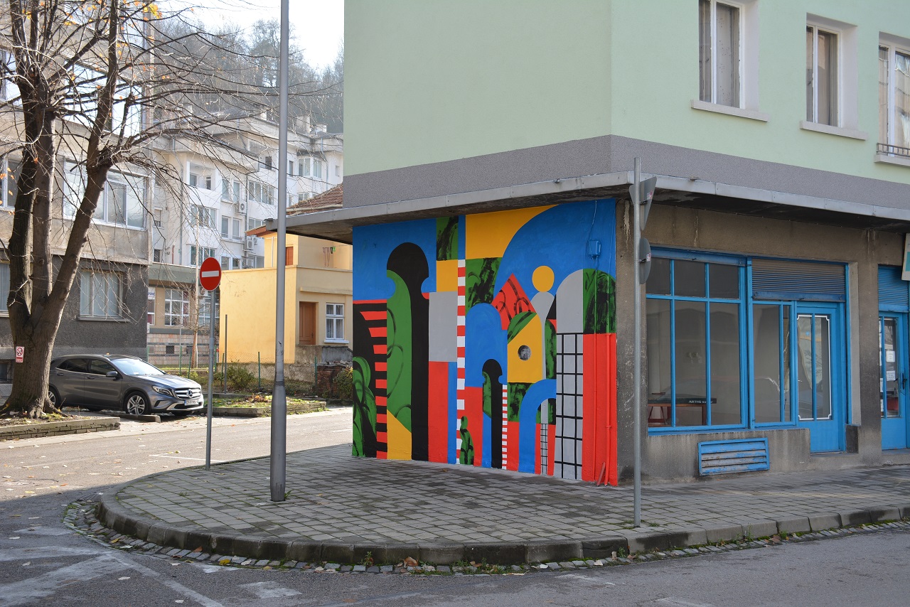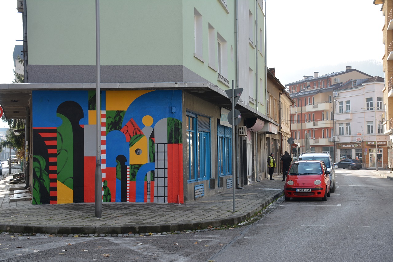 Ново произведение на уличното изкуство в квартал „Шести участък“ украси фасадата на кооперацията на ул. „Опълченска“ № 45. Цветната стена е дело на габровеца Мирослав Живков (Джингиби) от дизайнерското студио „НоПойнт Ателие“ (NoPoint Atelier).