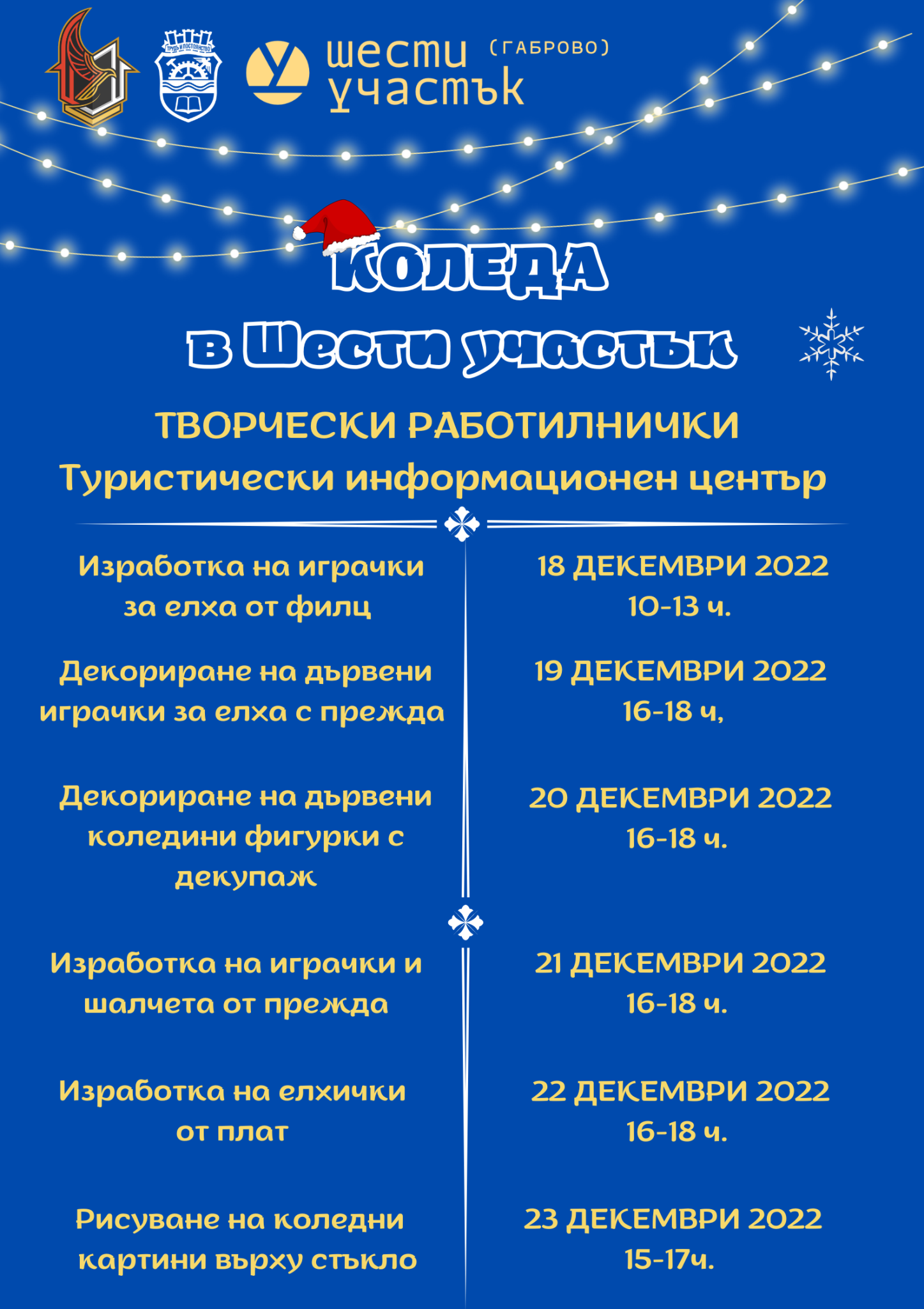Шест творчески работилници ще разкрият тънкостите при изработка на коледни декорации с различни материали и техники по време на "Коледа в Шести участък".