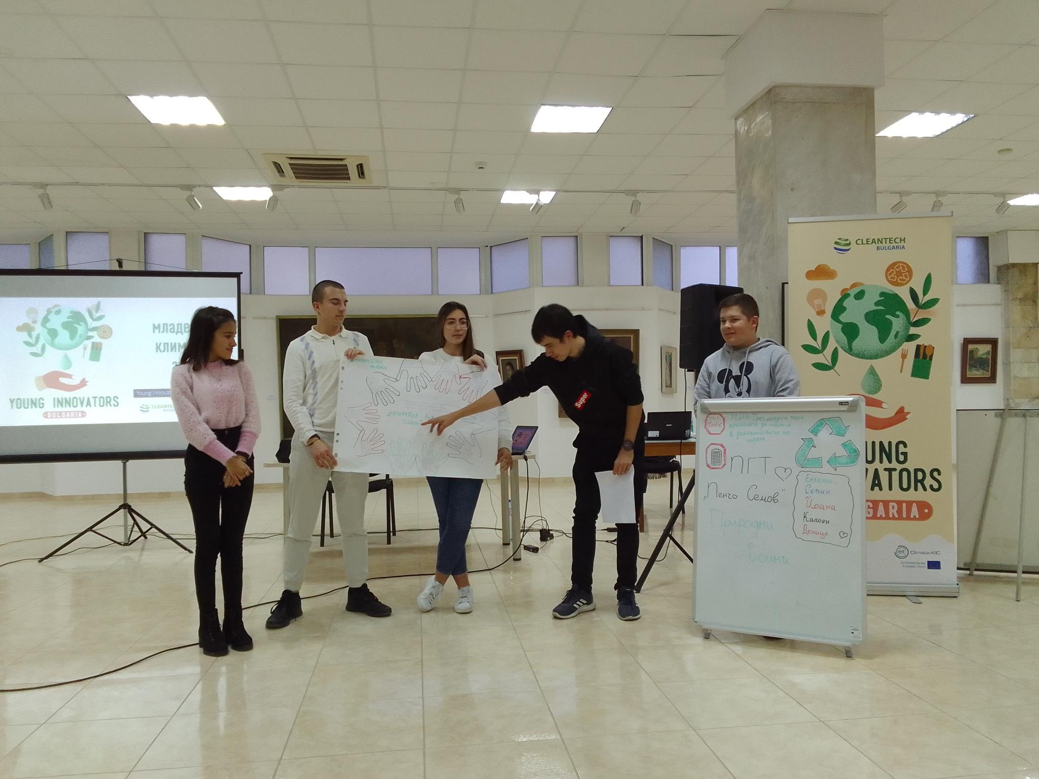 Отбор „Природни вòйни“ от ПГТ „Пенчо Семов“ нарече проекта си „Природа за смет“ и обясни, че това е един лесно изпълним проект, който обаче засяга удобството на хората, но пък именно заради това удобство се е стигнало до прекаленото преопаковане на стоките и в резултат на това генерирането на много отпадъци. Една от идеите на отбора е стоките, които са в опаковки за многократна употреба да бъдат на по-ниска цена. За да достигне повече информация за климатичните проблеми, тя трябва да бъде на достъпен език, а едно такова решение е да се разработят фирми, сценки и игри, които да се разпространяват сред децата, защото така ще се създадат трайни навици.