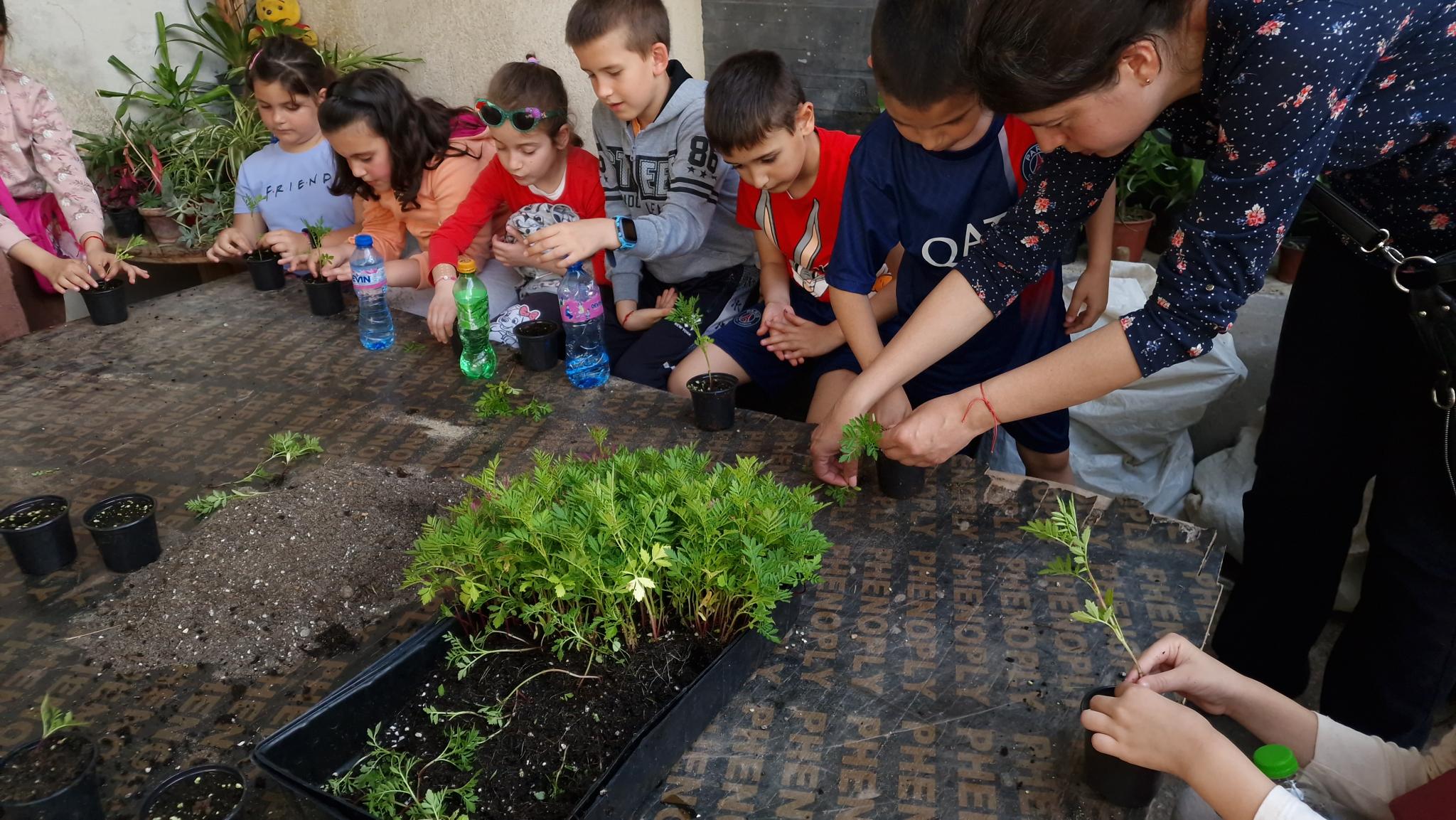 Учениците са изключително любопитни към процеса на отглеждане на цветята - от засяването на семена до засаждането на големите растения в цветните фигури и кашпите в града. Те с удоволствие се включват в процеса на подготовка на разсад от вида тагетис както и в плевенето на вече готовия разсад от салвия-пламъче. Децата бързо се ориентират как да различават плевелите от цветята и допринасят със своята сръчност за подготовката на разсадите за засаждане в цветните пространства в града.