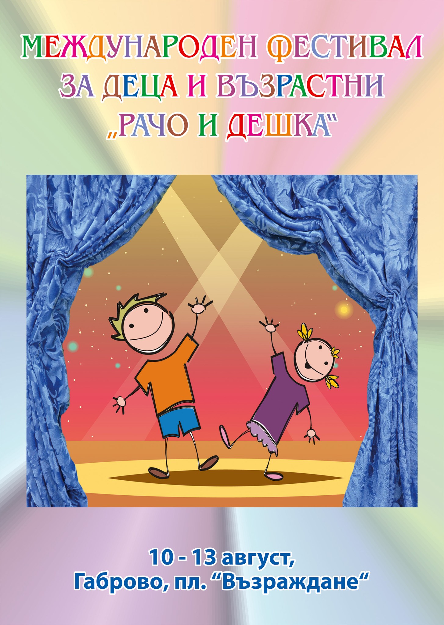 От 10 до 13 август Габрово отново ще се превърне в куклена сцена, където среща ще си дадат участниците от Международния фестивал „Рачо и Дешка“. Той се реализира от Фондация „ОТ БГ“ по програма Култура на Община Габрово, Приоритет „Утвърдени фестивали и творчески инициативи“. Фестивалът стъпва на добрата традиция, която тази година е надградена и ще го превърне в събитие не само за деца, но и за възрастни.