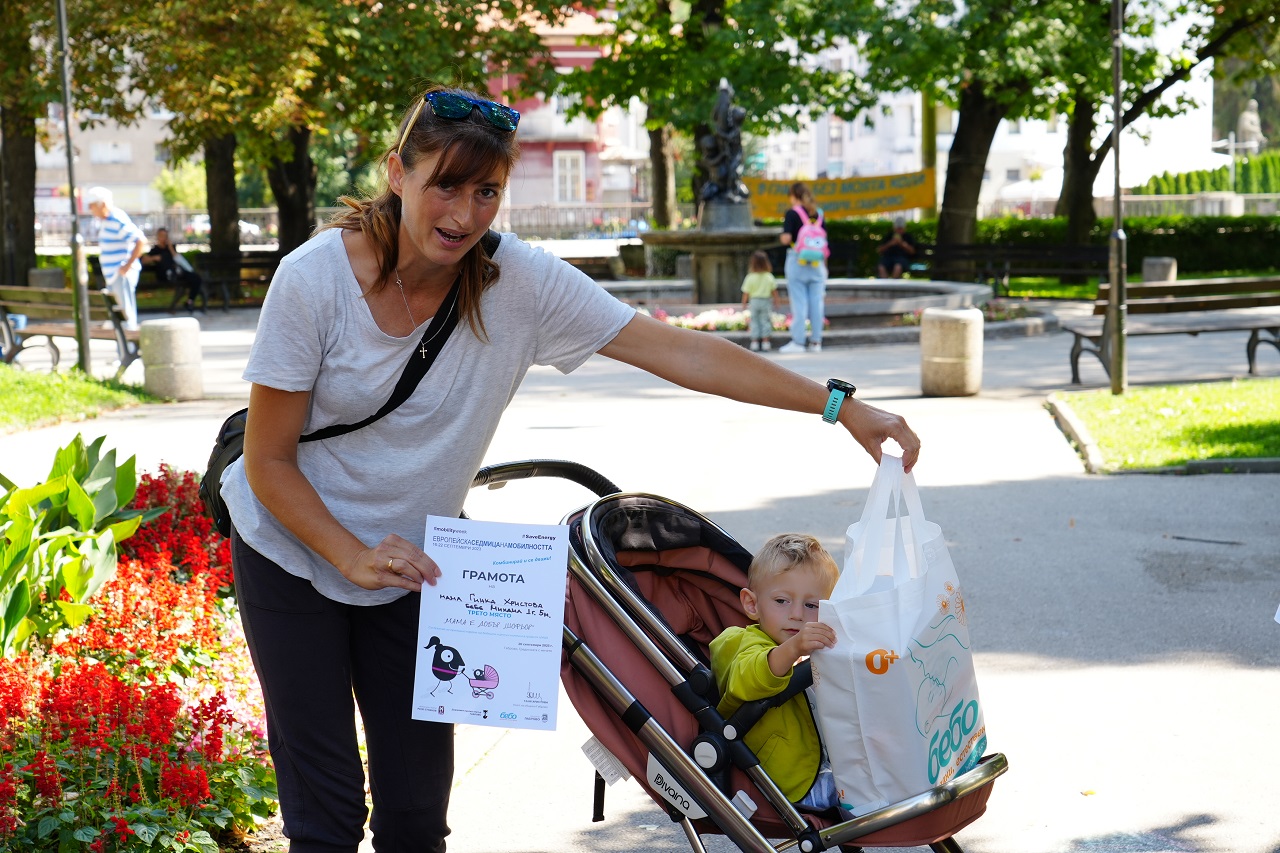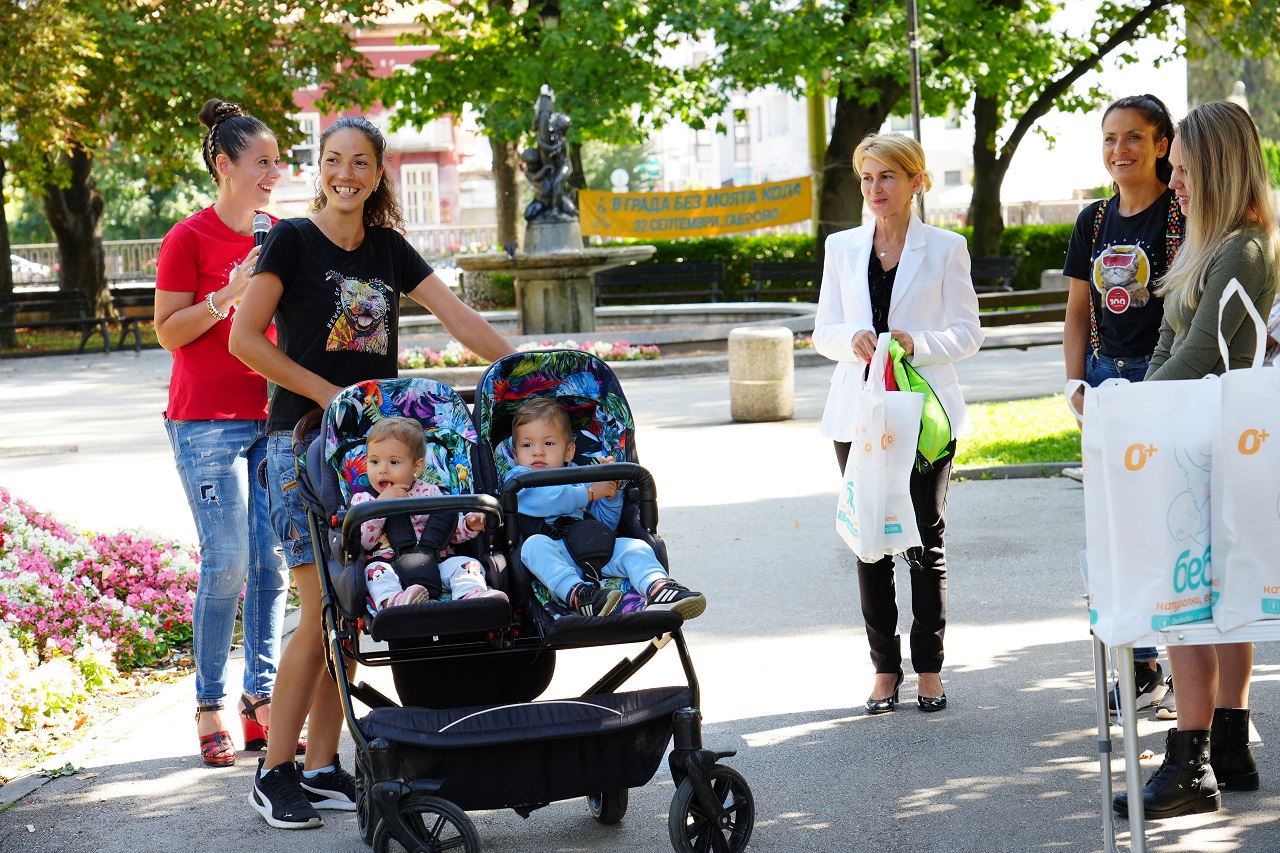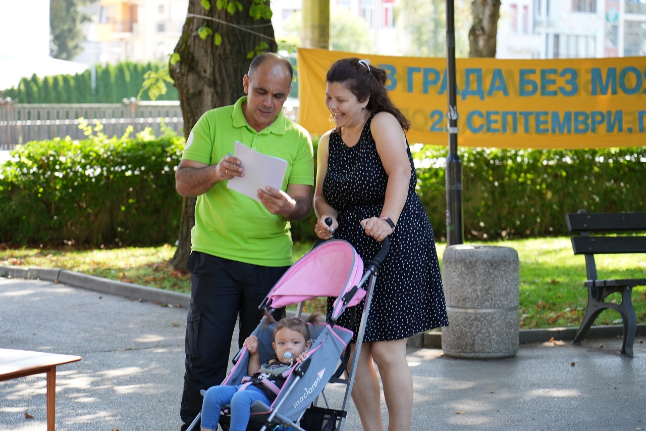 На импровизирания мотополигон умения по майсторско управление на бебешка количка показаха 22 майки, две лели и един баща. За да усети тръпката от участието, трасето изпробва и кореспондентът на Българската национална телевизия за региона Зорница Илиева заедно със своя четириног любимец Лора. Сред пасажерите в колички се включиха 11 малки госпожици и 15 момченца.