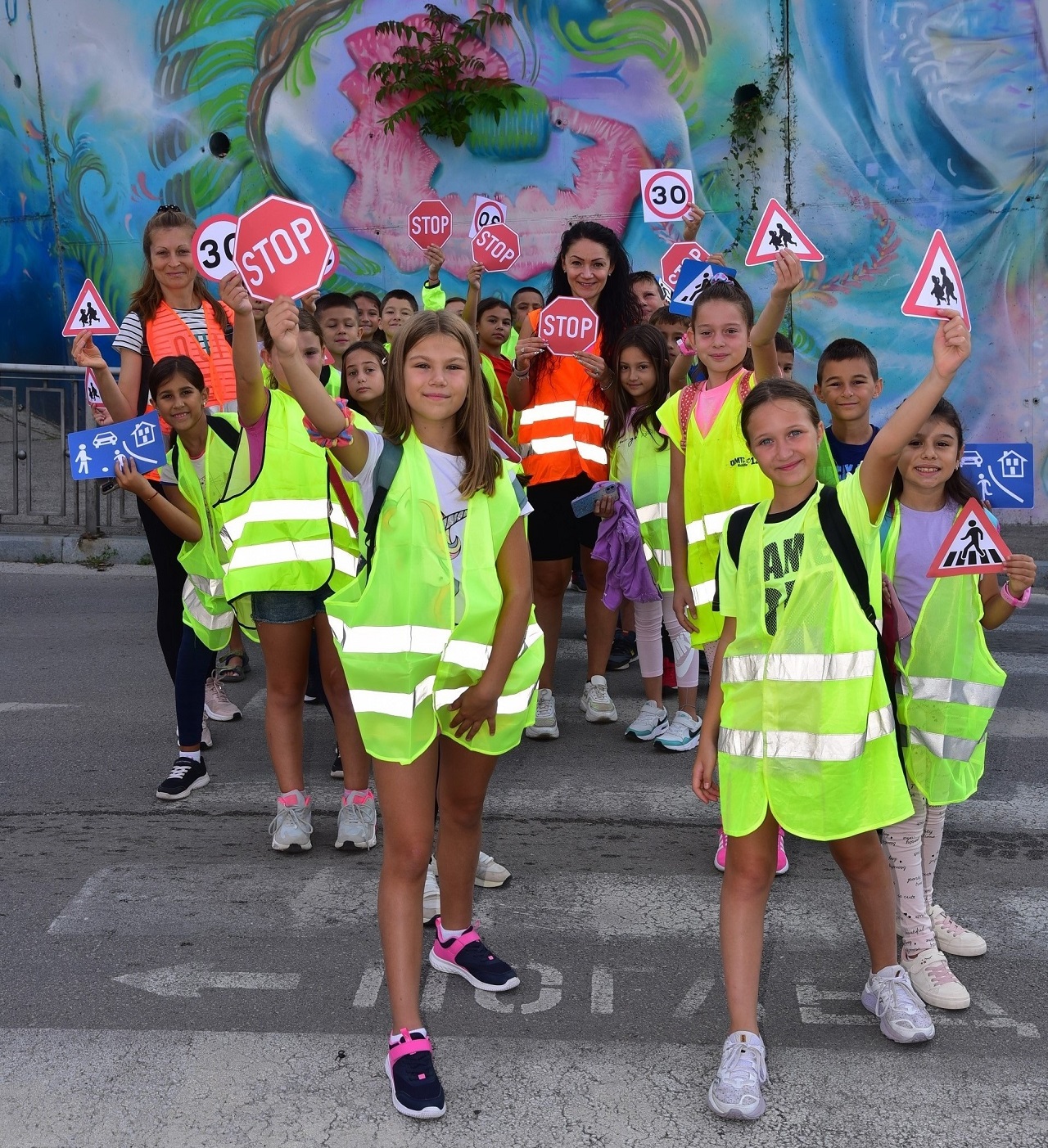 На второ място с 304 лайка се наредиха учениците от 3.В клас на ОУ „Ран Босилек“. Тяхната снимка е направена на фона на изрисуваната подпорна стена при Източната градска улица. Заедно с ръководителите Силвия Василева и Петя Генчева малчуганите илюстрират основни елементи за безопасно движение по пътищата.