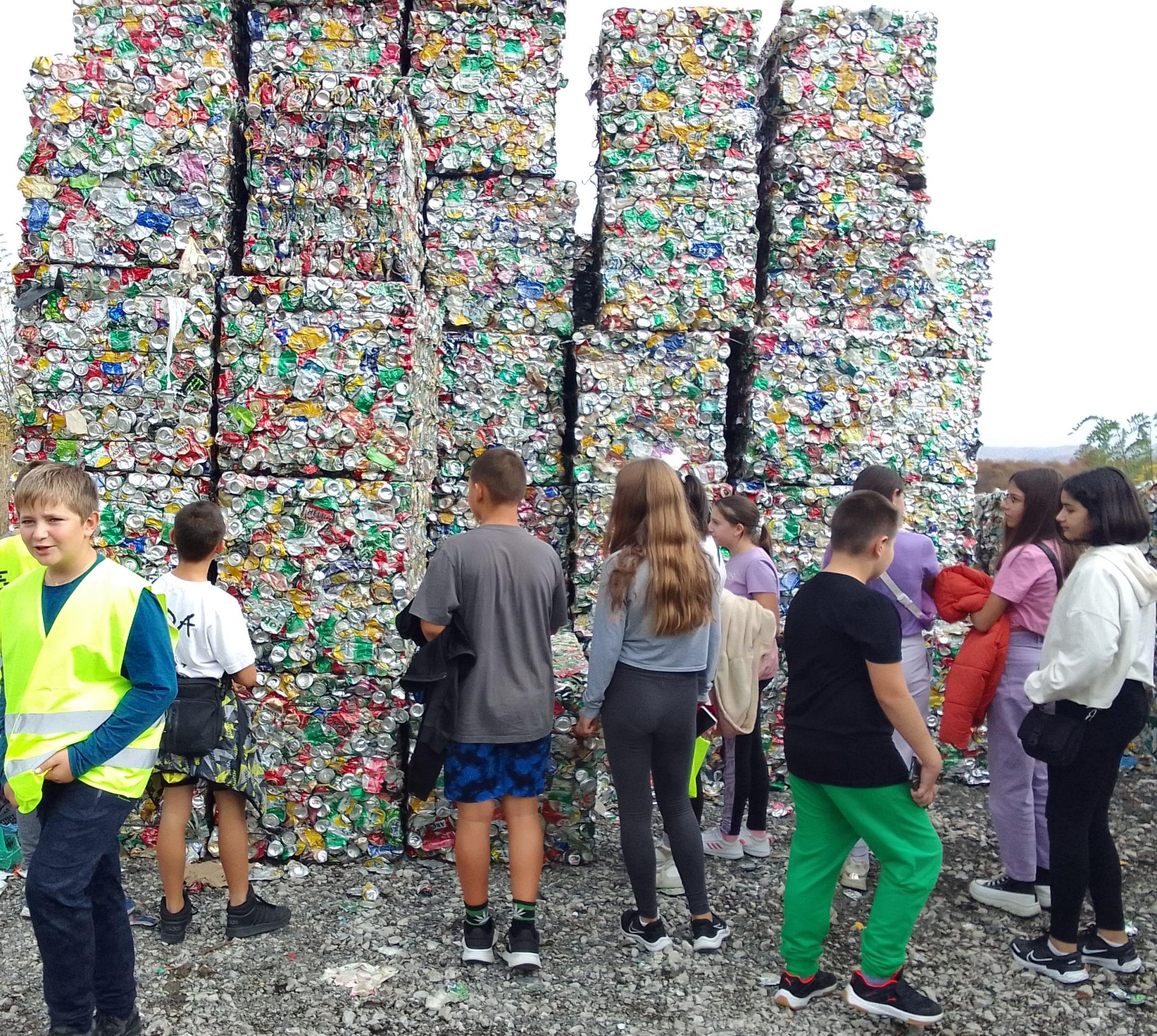 Обходът на депото стартира от зоната за разкомплектоване на мебели и инсталацията за сепариране, където рециклируемите отпадъци се разделят по вид спрямо материала, от който са направени. Особен интерес за учениците бяха подготвените за рециклиране алуминиеви кенчета, чийто вид изглежда почти като от „фентъзи“ – бляскави, пъстри, подредени във огромни бали.