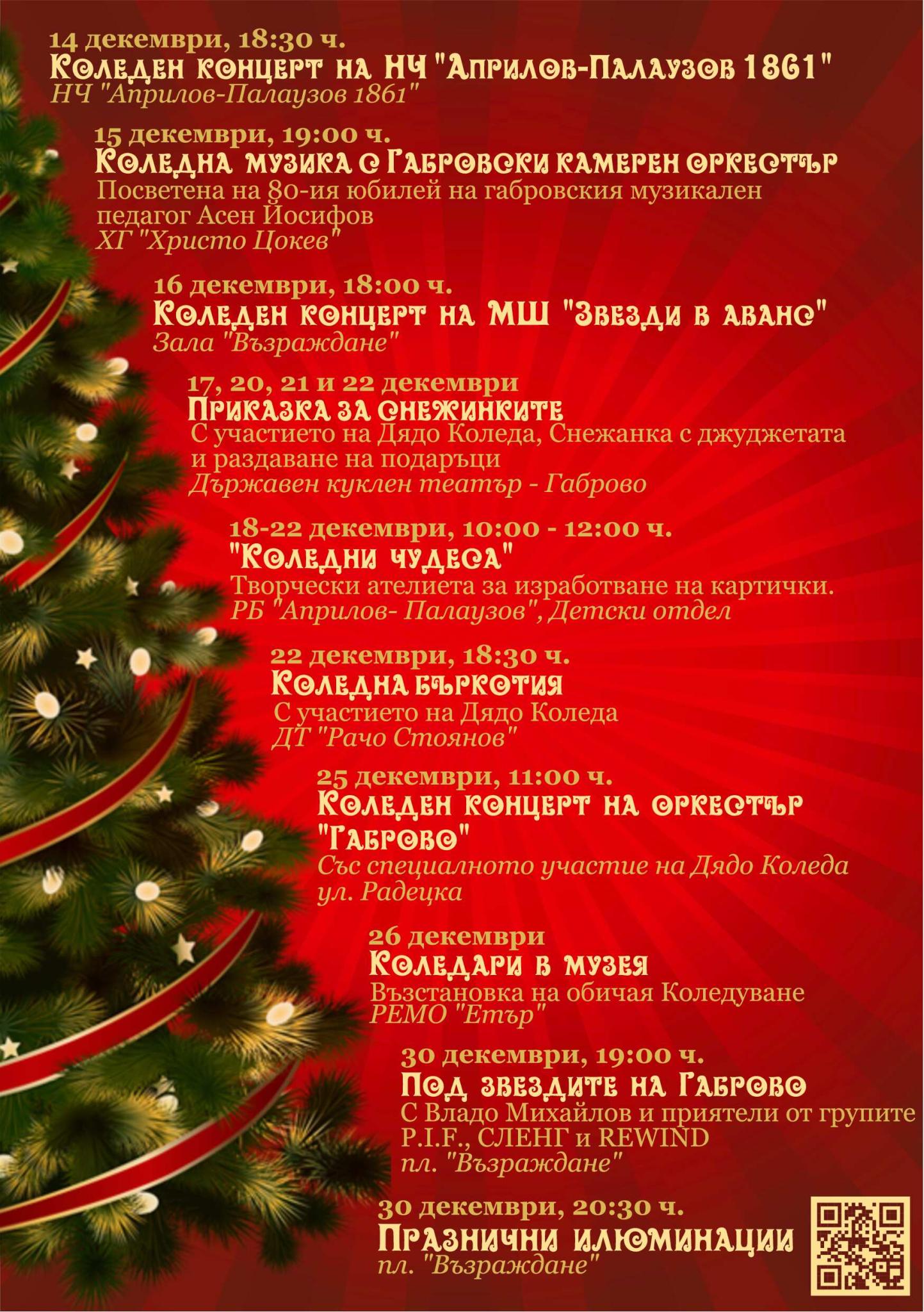 Запалване на светлините на коледната елха /С участието на ученици от ОУ „Иван Вазов“ и Оркестър „Габрово“