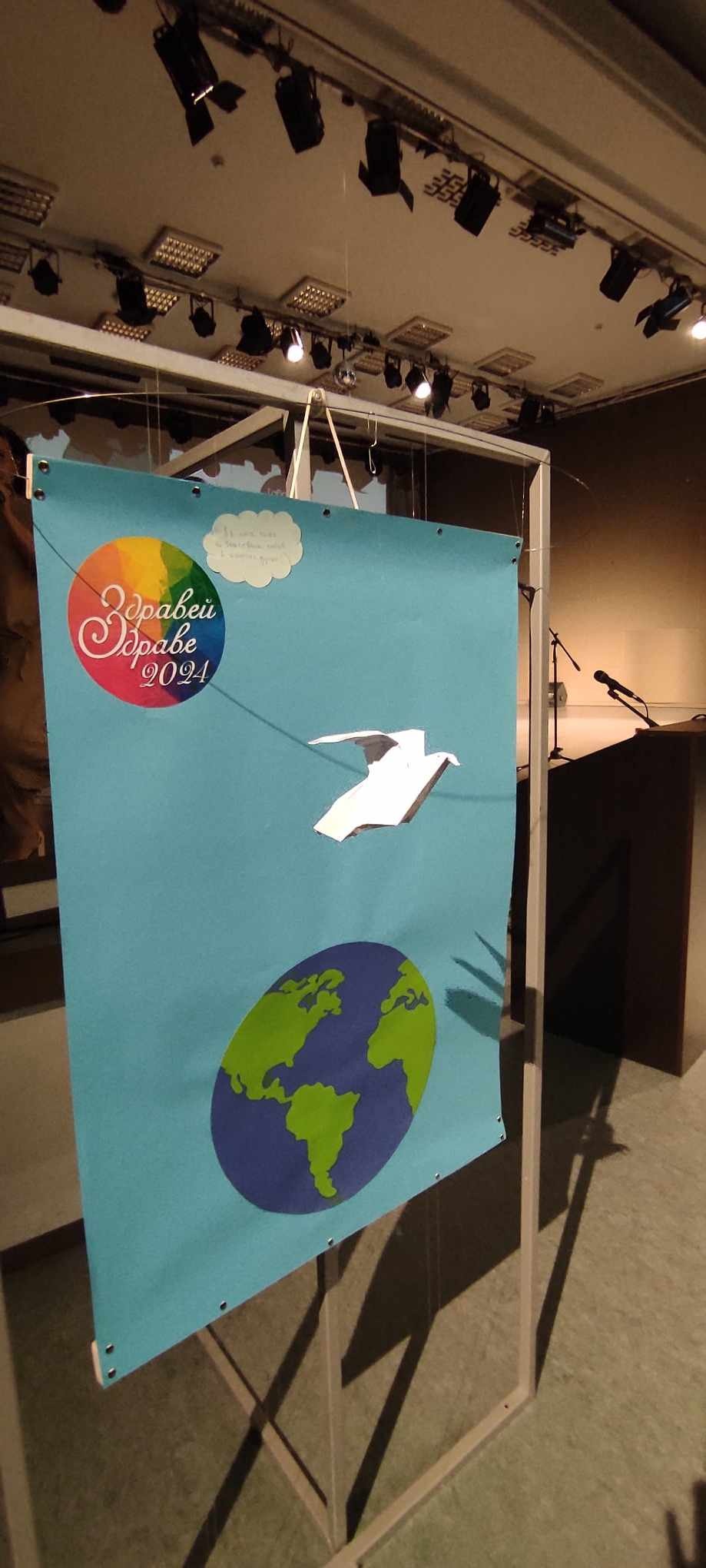 100 бели гълъба от хартия ще донесат най-чистите детски послания до всички, който ще станат част от „Здравей, здраве“ днес и утре. "Надежда!" беше пожеланието, което кметът на Габрово получи чрез творенията на децата. Гълъбите са дело на възпитаници на IVв клас от ОУ "Нефит Рилски" и вече очакват всички посетители на входа на зала "Възраждане".