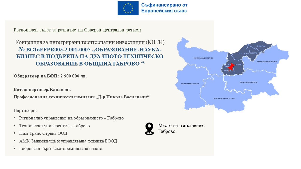 Концепцията за интегрирани териториални инвестиции на Професионална техническа гимназия „Д-р Никола Василиади“, гр. Габрово предлага инструменти за повишаване ефективността на регионалния и местните пазари на труда и осигурява интеграция на политиките за развитие на уменията с политиките за регионално икономическо развитие.