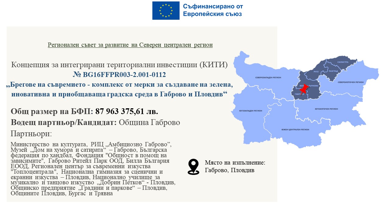 Линк към презентация и анкета на (КИТИ) № BG16FFPR003-2.001-0112 Брегове на съвремието - комплекс от мерки за създаване на зелена, иновативна и приобщаваща градска среда в Габрово в Пловдив“: