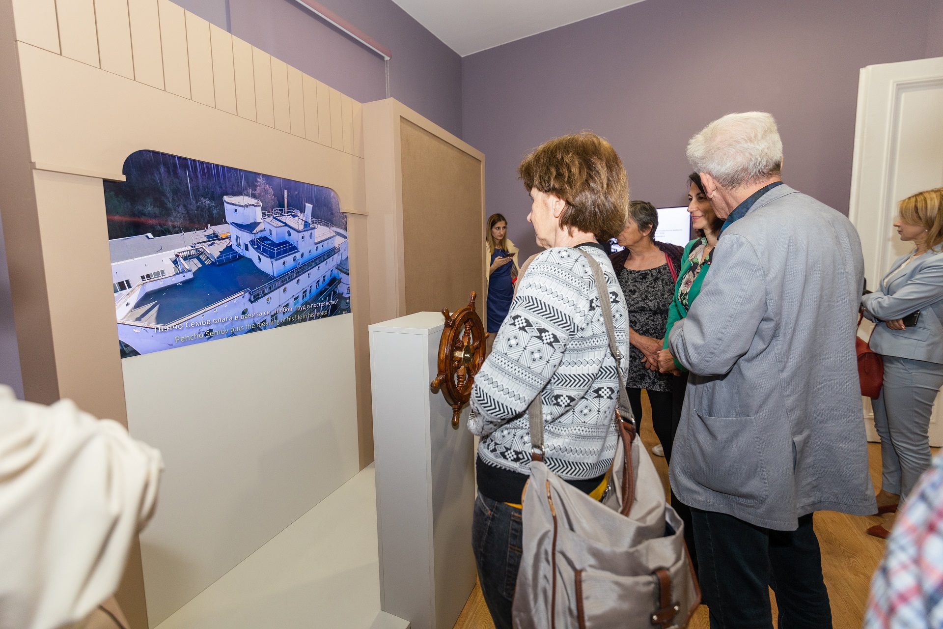 Екран с мултимедиен разказ за сградата на индустриалеца Пенчо Семов „Парахода“
