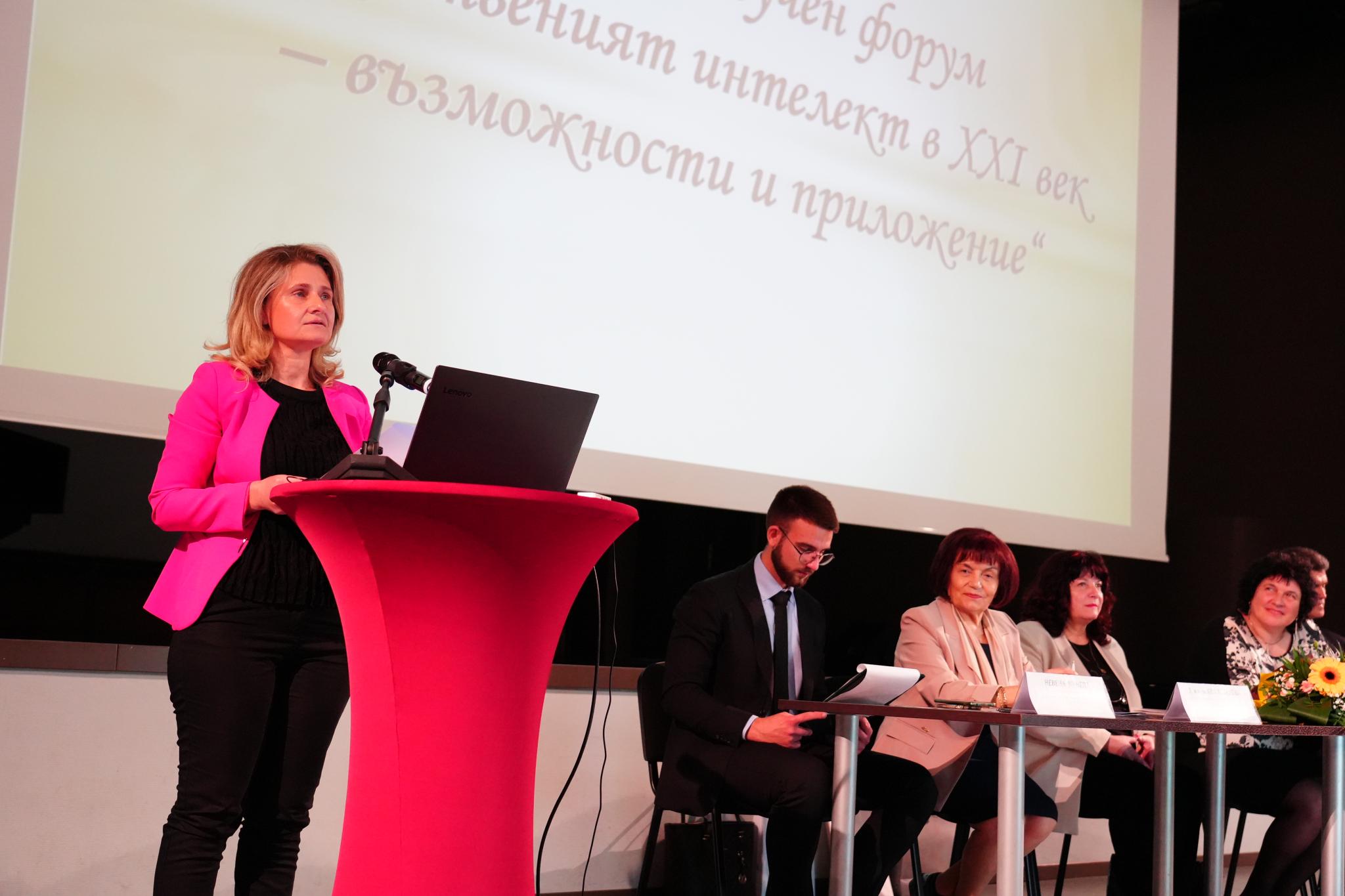 Заместник – кметът с ресор образование, култура, младежки дейности и спорт Невена Минева взе участие в областен научен форум на тема „Изкуственият интелект в 21 век – възможности и приложение“, организиран в Габрово от Синдикат на българските учители в Габрово със съдействието на Природоматематическата гимназия „Акад. Иван Гюзелев“ и национална секция „Средно образование“ към Изпълнителния комитет на Синдиката на българските учители (СБУ).