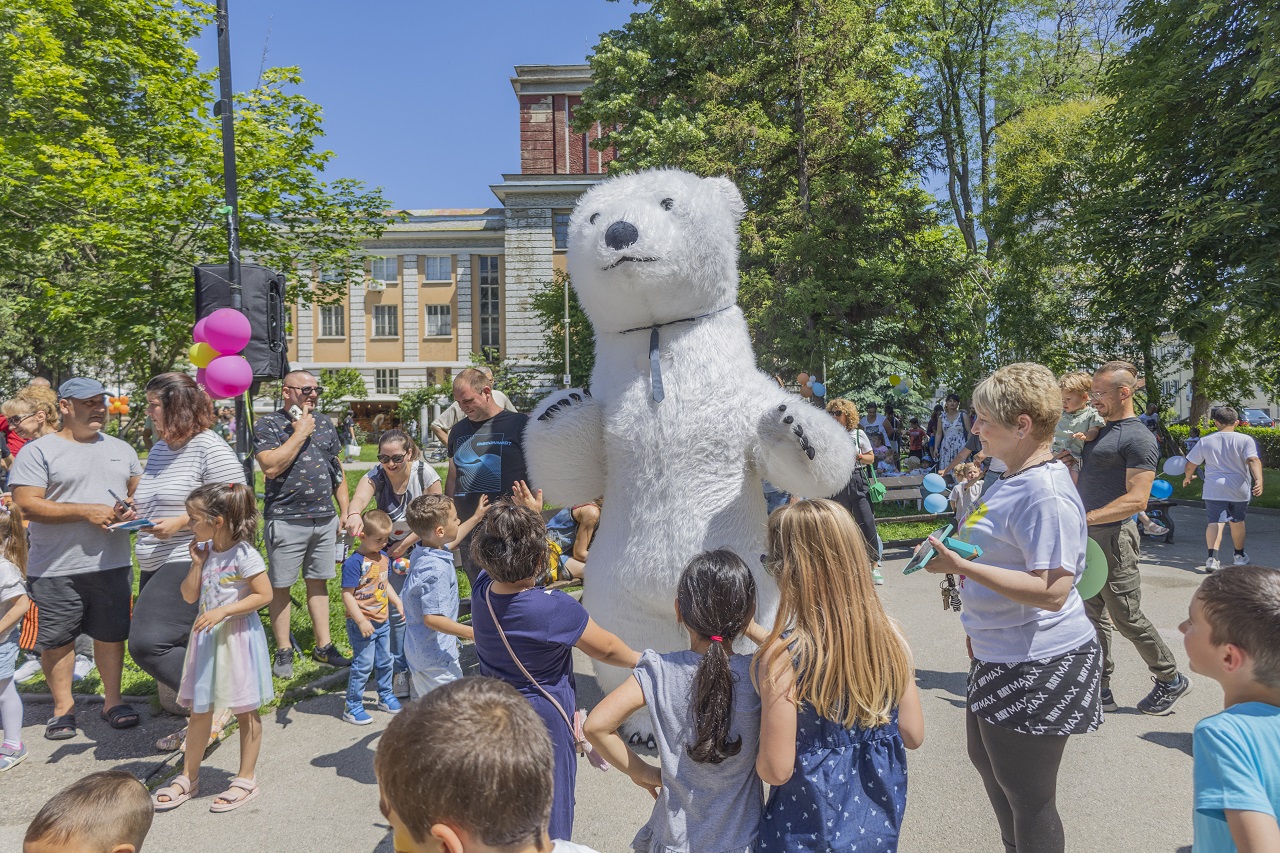 Супер изненадата на събитието беше бяло полярно мече, което предизвика множество емоции и усмивки. Оказа се, че симпатичното животно обитава район около габровското село Стоманеците и е тайният пазител на градинката с мечето, който се появява само при много специални поводи, какъвто е първи юни.