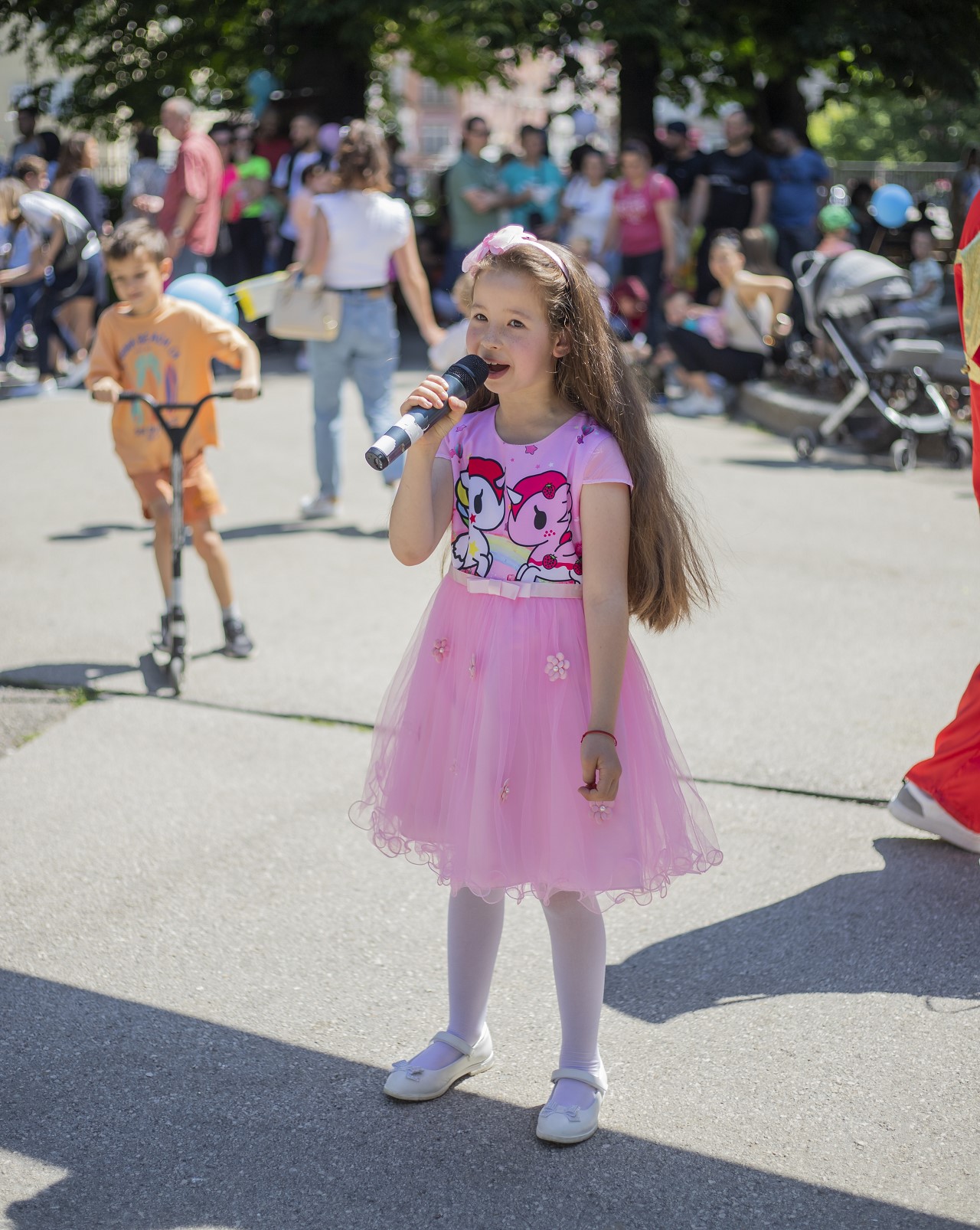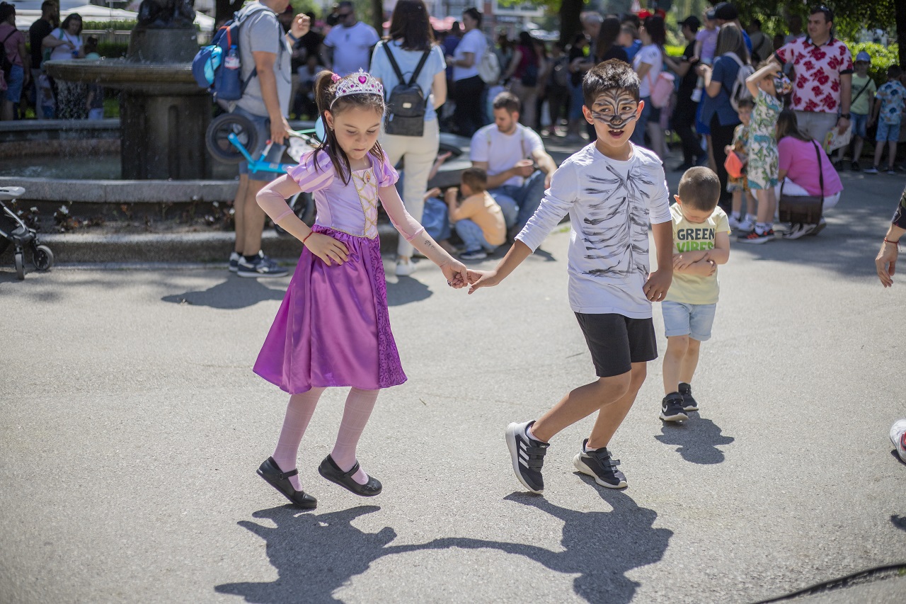 Близо три часа деца от различни възрасти лудуваха, пяха и танцуваха заедно, а на територията на парка се проведоха различни творчески работилници, спортни и образователни игри, имаше рисуване върху лице и театрални фотосесии с приказни герои.