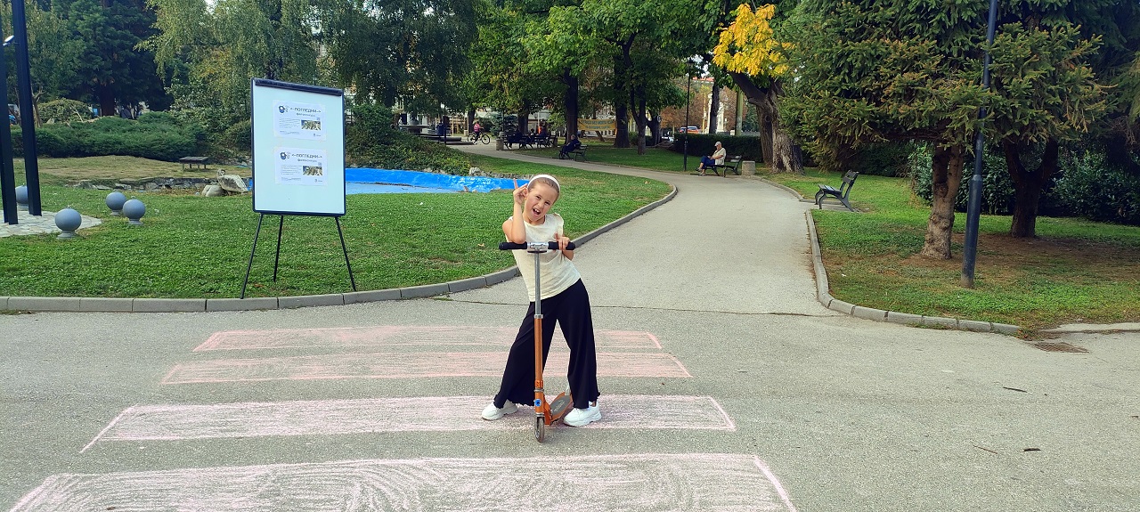 Със 78 харесвания на второ място се нареди снимката на сборен екип от три малки госпожици. Четиригодишните Елеонора Гавазова и Велизара Ковачева заедно с третокласничката от СУ „Райчо Каролев“ Мартина Ковачева показват как трябва да преминават през пешеходна пътека водачите на велосипеди и тротинетки.