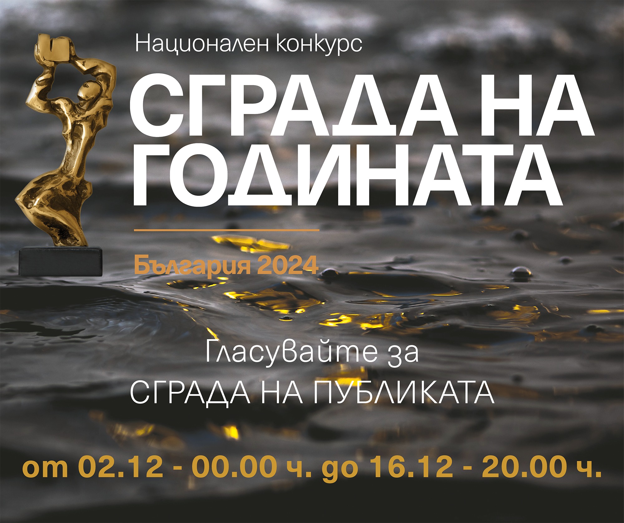 Участникът, събрал най-много гласове, ще получи приза „Сграда на публиката 2024“. Вотът ще стане ясен в деня на официалната церемония, която ще се състои на 17 декември в столичния „София Ивент Център“ и ще бъде излъчена по Българската национална телевизия на 21 декември от 23:00 часа.
