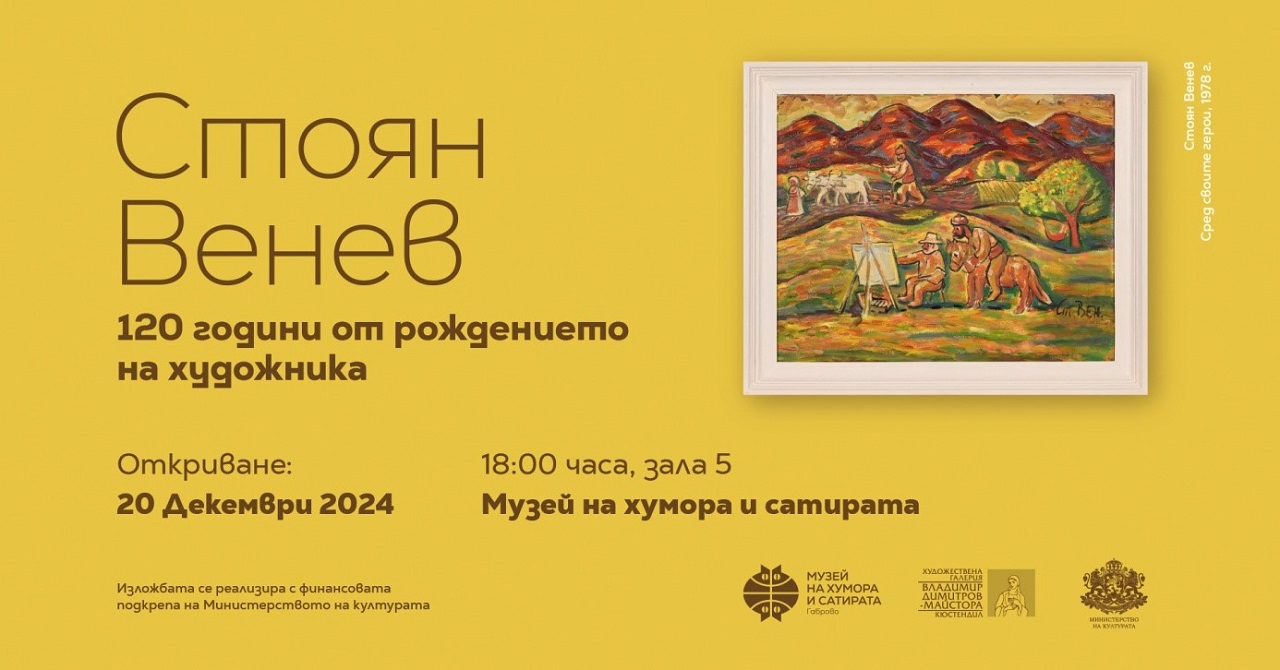 С впечатляваща изложба Музеят „Дом на хумора и сатирата“ в Габрово ще отбележи 120-годишнината от рождението на художника Стоян Венев – един от класиците на българското изобразително изкуство. Откриването ще се състои в петък, 20 декември 2024 г., от 18:00 часа в зала 5 на Веселата къща.